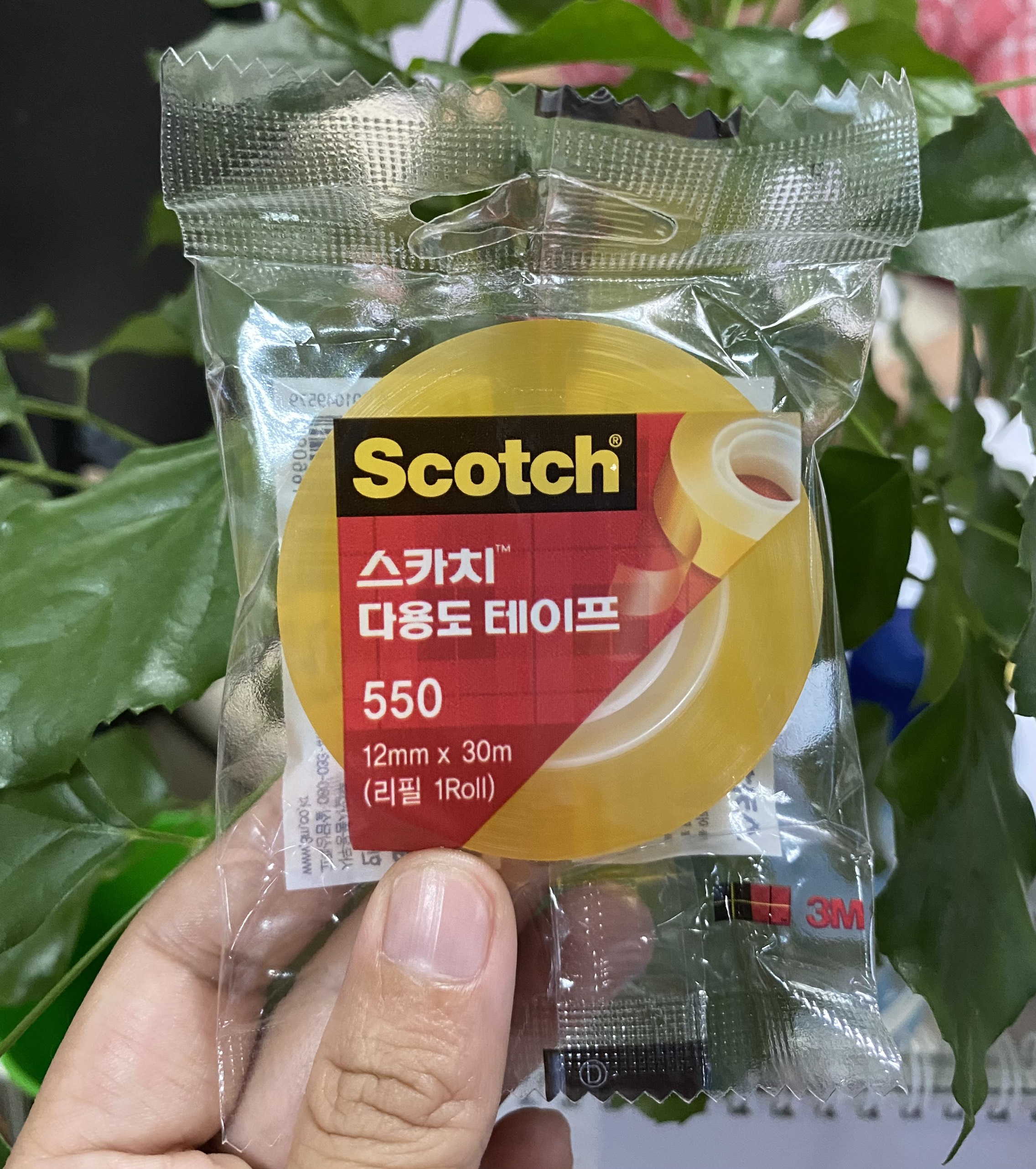 THÔNG TIN SẢN PHẨM: Mã sản phẩm: 550 Kích thước: 12mm x 30m Thương Hiệu: 3M Thành phần: Băng keo siêu dính Quy cách: 12 cuộn/hộp, Băng keo Scotch của 3M Hàn Quốc có chất