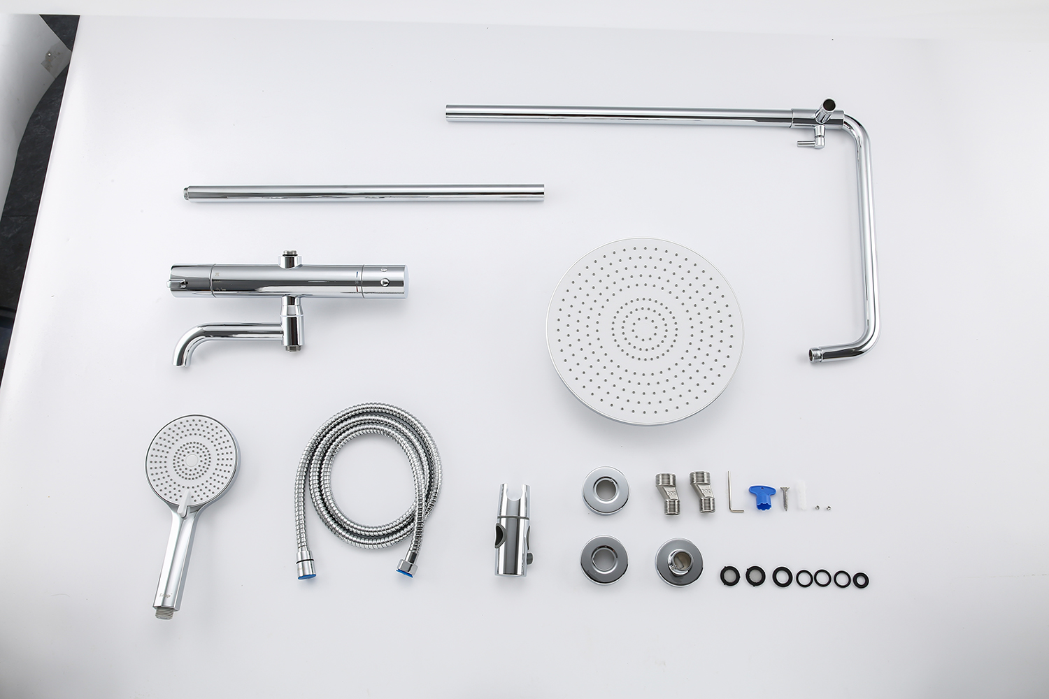 Combo gồm: 01 thân vòi sen lạnh, 01 chụp chân sen, 01 thân vòi lavabo, 01 dây cấp nước, 01 tay sen, 01 dây sen, 01 gác tay sen + ốc vít và tắc kê