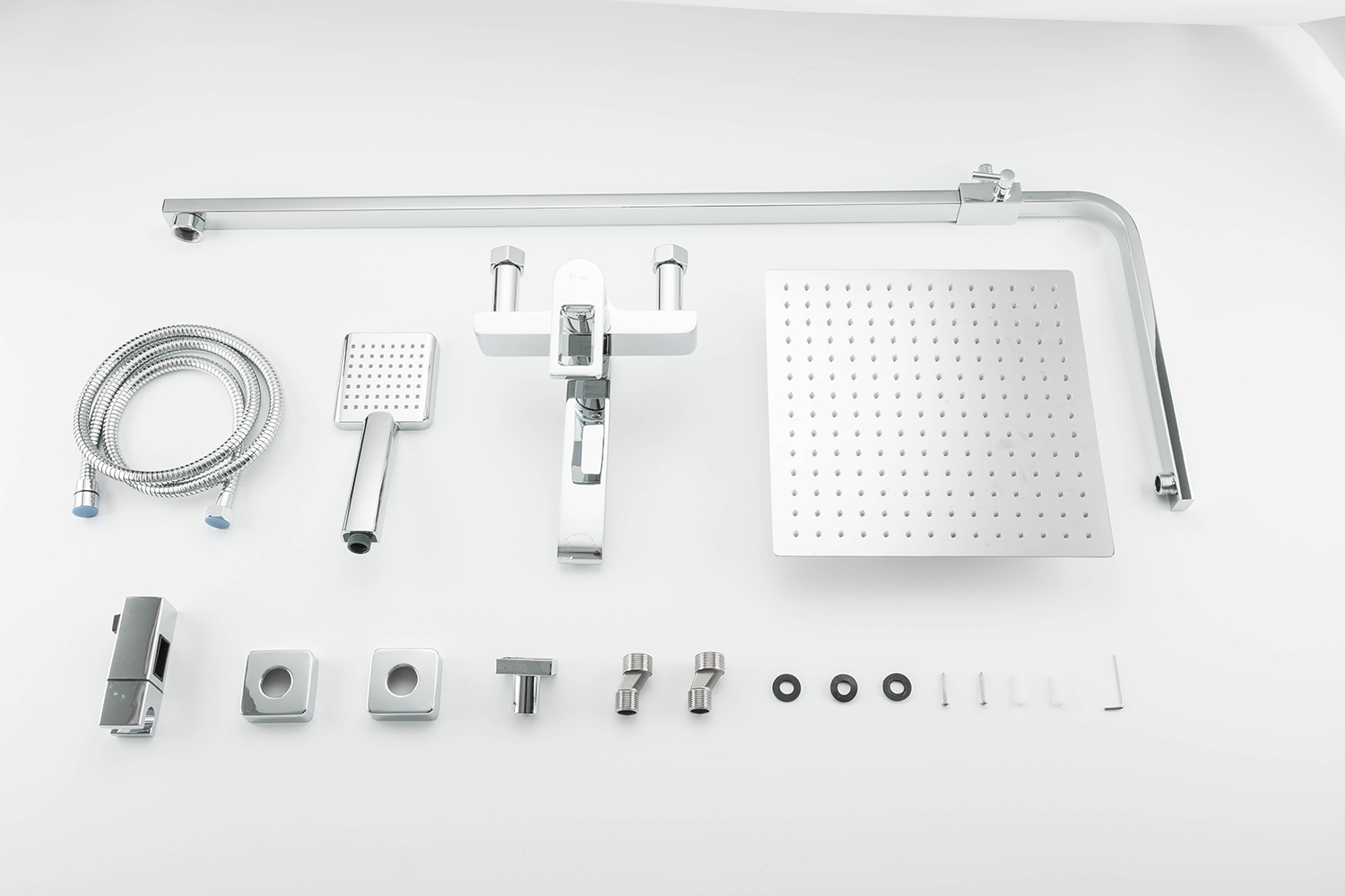 Combo gồm: 01 thân vòi sen lạnh, 01 chụp chân sen, 01 thân vòi lavabo, 01 dây cấp nước, 01 tay sen, 01 dây sen, 01 gác tay sen + ốc vít và tắc kê