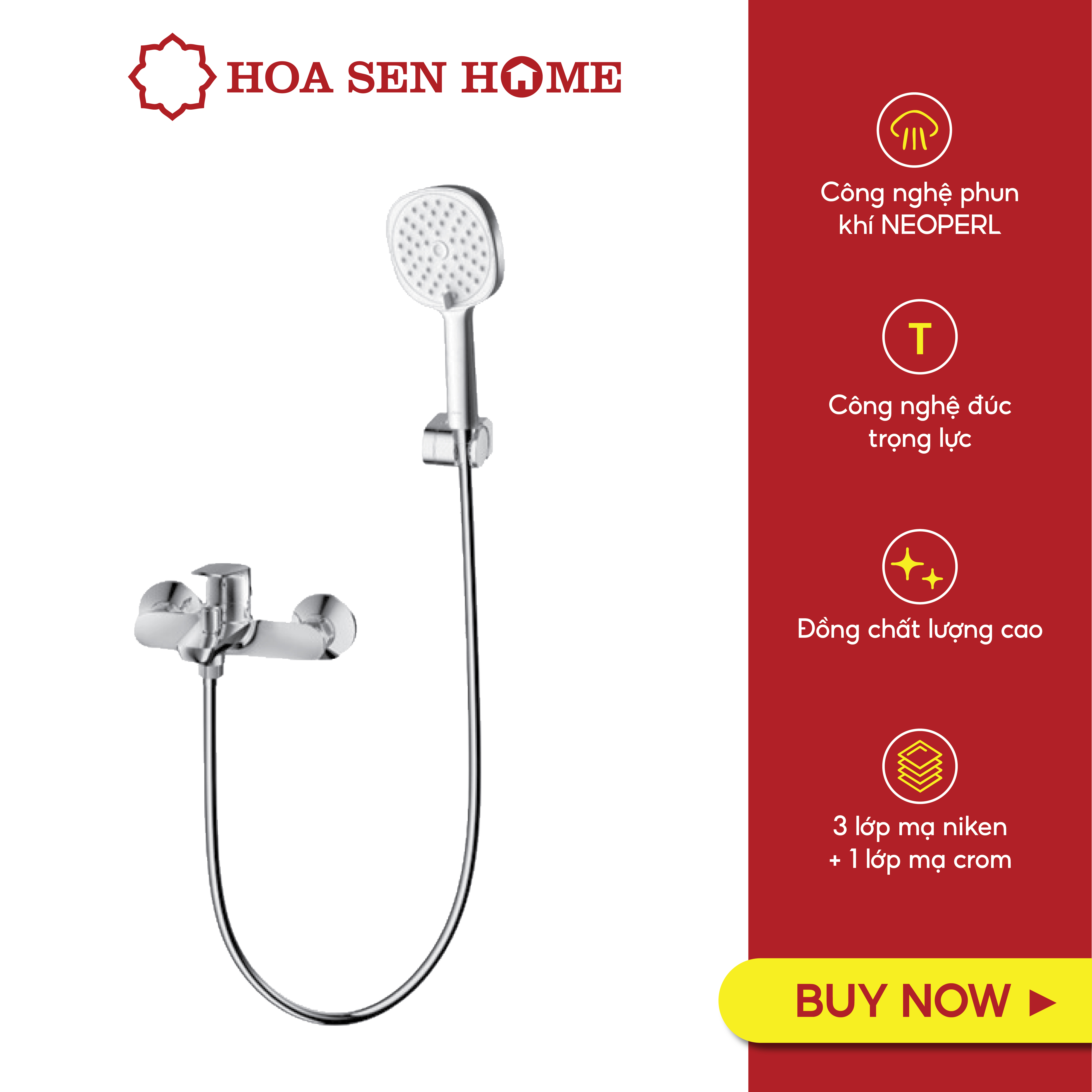 Mạ 3 lớp Niken và 1 lớp Crom: Lớp mạ luôn sáng bóng, không bám bẩn, dễ dàng lau chùi và vệ sinh sau mỗi lần sử dụng, đảm bảo tính thẩm mỹ dài lâu của bộ sen tắm.