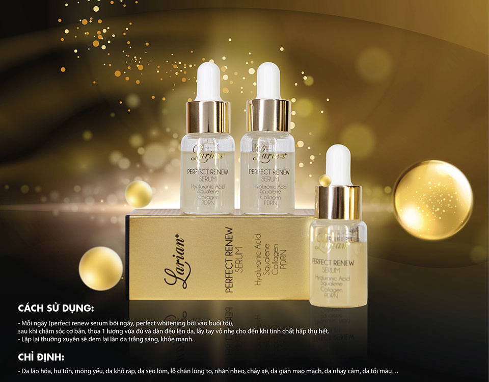 Perfect Renew Larian+ được công bố bởi Bộ An toàn thực phẩm và dược phẩm Hàn Quốc chứa Adenosine có chức năng cải thiện nếp và DNA cá hồi có khả năng tái sinh làn da.