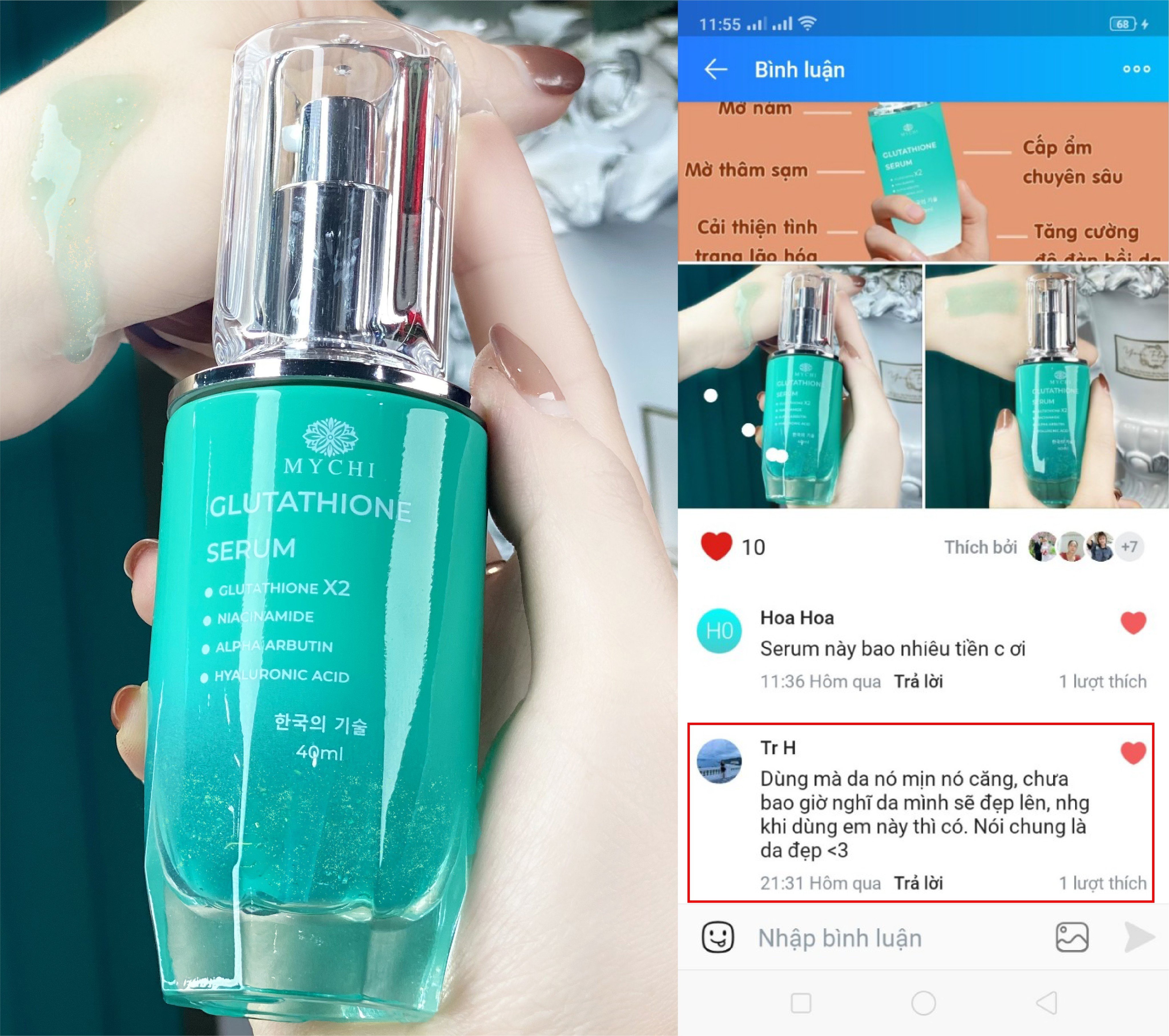 Mua tại TiktokSerum Mychi - Serum cấy trắng lá vàng 24k glutathione 1.CÔNG DỤNG