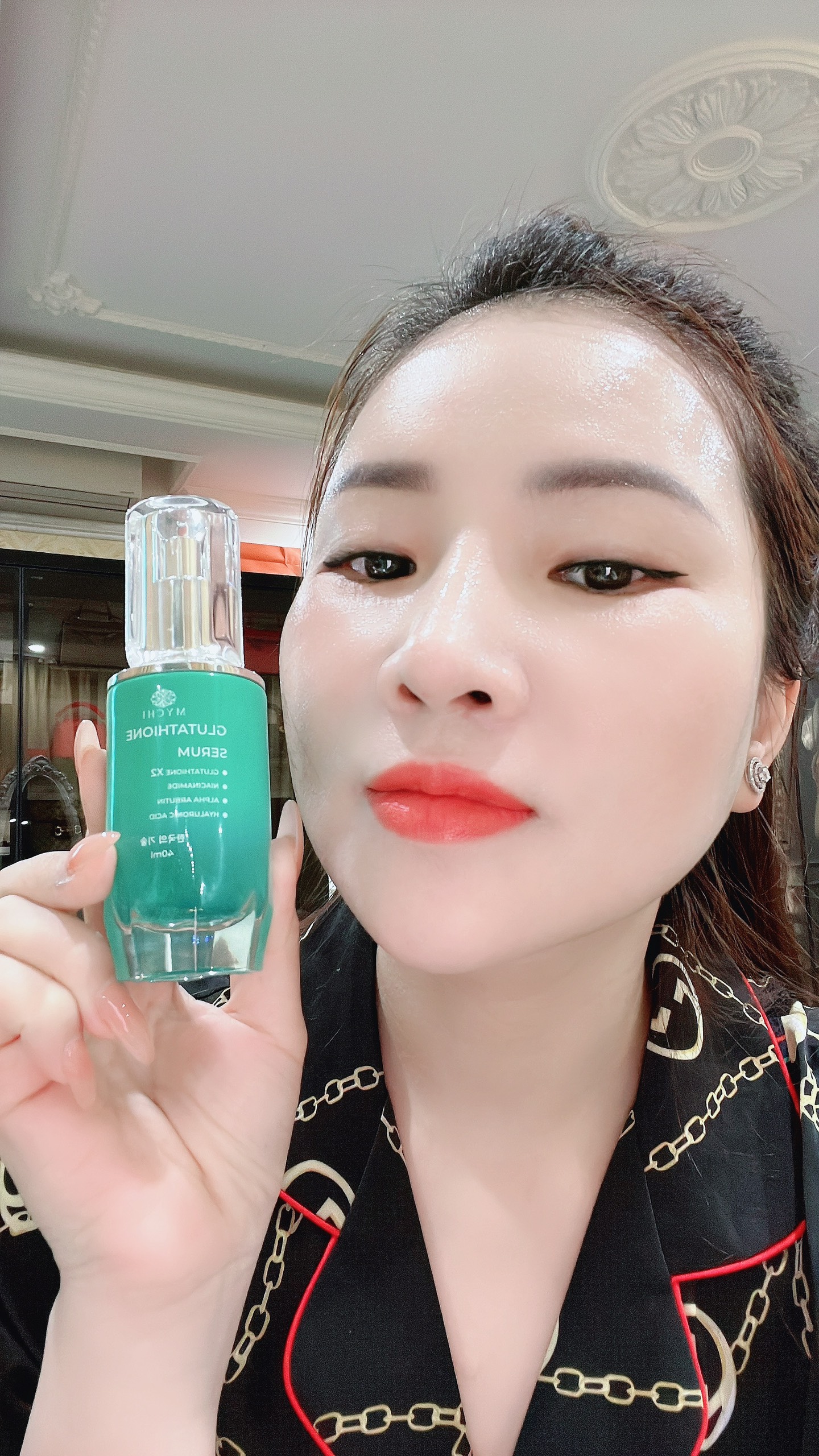 Serum Mychi - Serum cấy trắng lá vàng 24k glutathione 1.CÔNG DỤNG - Dưỡng da trắng sáng, mờ thâm sạm, giúp đồng đều sắc tố da - Chống oxy hóa da, cải thiện tình trạng