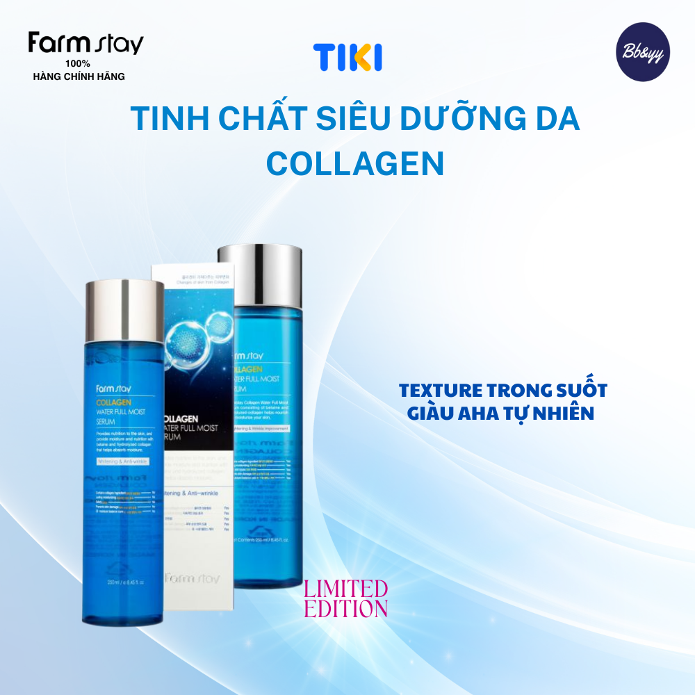 Tinh Chất FARMSTAY Collagen Dưỡng Ẩm Sâu 250ml THÔNG TIN SẢN PHẨM: - Đơn vị tính và Quy cách đóng gói: Một Chai – 250ml. - Nước xuất xứ: sản xuất tại Hàn Quốc. CÔNG DỤNG: