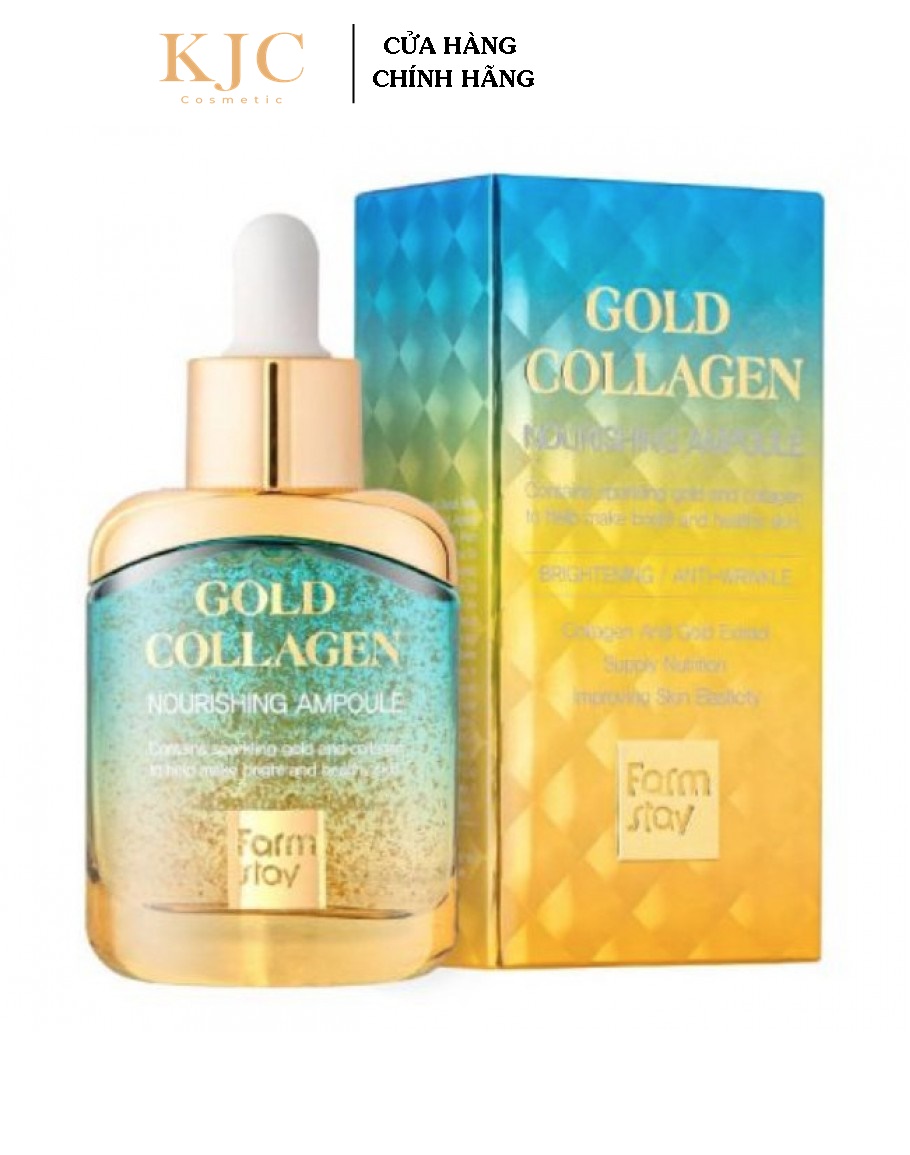 FarmStay - Tinh chất dưỡng trắng da chống lão hóa da Gold Collagen Nourishing Ampoule Phù hợp tất cả loại da kể cả da nhạy cảm ️Thành phần và công dụng nổi bật: Collagen thuỷ phân giúp giảm độ sâu nếp nhăn,cải thiện độ đàn hồi da Vàng thúc đẩy quá trình tái tạo phục hồi da ️ Cung cấp độ ẩm và dưỡng chất và làm căng da. ️Làm sáng da theo thời gian sử dụng ️ Kết cấu mỏng nhẹ,thẩm thấu nhanh ️Cách sử dụng:Sử dụng sau các bước làm sạch da và thoa đều sản phẩm lên bề mặt da đã được làm sạch