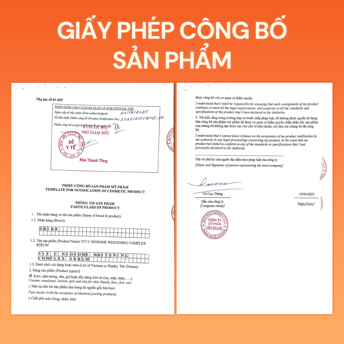 - Da khỏe khoắn, đầy sức sống. HIỆU QUẢ SỬ DỤNG Hiệu quả nhanh chóng: Làn da căng sáng và mịn mướt hơn ngay sau lần đầu tiên sử dụng. ĐỐI TƯỢNG SỬ DỤNG – Người gặp các tình trạng: Sạm da, nám da, tàn nhang, da khô, nhăn, đàn hồi kém. – Người muốn dưỡng trắng ra, dưỡng ẩm da, tăng cường độ đàn hồi, ngăn ngừa lão hóa da. THÔNG TIN THƯƠNG HIỆU Oribe là thương hiệu Dược mỹ phẩm của Việt Nam với các sản phẩm có thành phần nguyên liệu thiên nhiên, với ý nghĩa Original Beauty – Đẹp từ gốc, Oribe luôn đặt chất lượng sản phẩm và lợi ích của khách hàng lên làm tôn chỉ hàng đầu, đặc biệt nói KHÔNG với Paraben & Corticoid trong tất cả sản phẩm. BẢO QUẢN