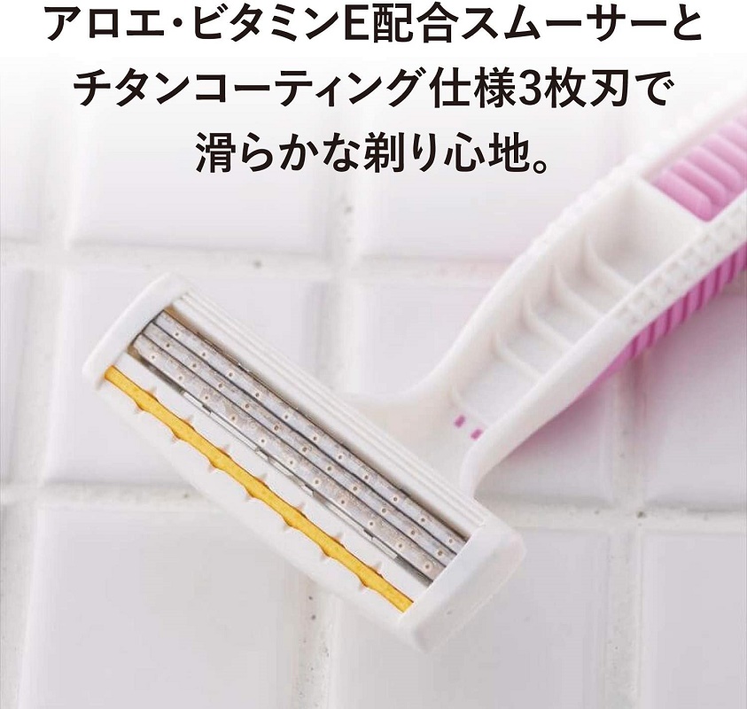 Set 03 chiếc dao cạo Kai Pretty Body, thiết kế 3 lưỡi kép tạo ra những đường cắt nhanh và hiệu quả hơn - nội địa Nhật Bản Chất liệu: Lưỡi bằng thép không