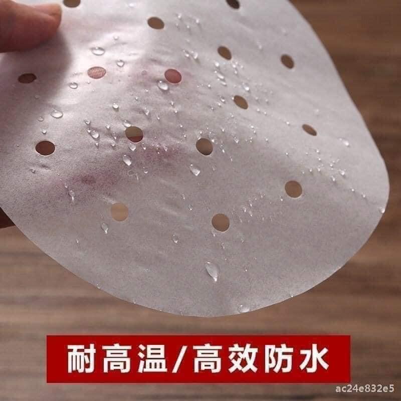 Set 100 tờ Giấy nến đục lỗ Giấy nến tròn lót xửng hấp, nồi chiên không dầu, hấp bánh bao chống dính