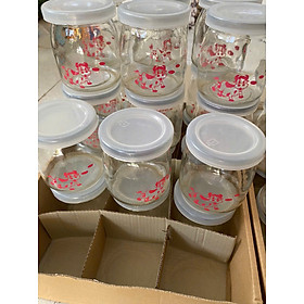 Hộp 12 Hũ Thuỷ Tinh Đựng sữa chua khổng Lồ In Hình Cute 200 Ml