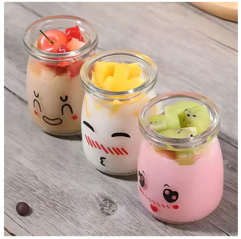 Bộ 6 Hũ Thuỷ Tinh Đựng Sữa Chua In Hình Ngẫu Nhiên Cute 100 Ml
