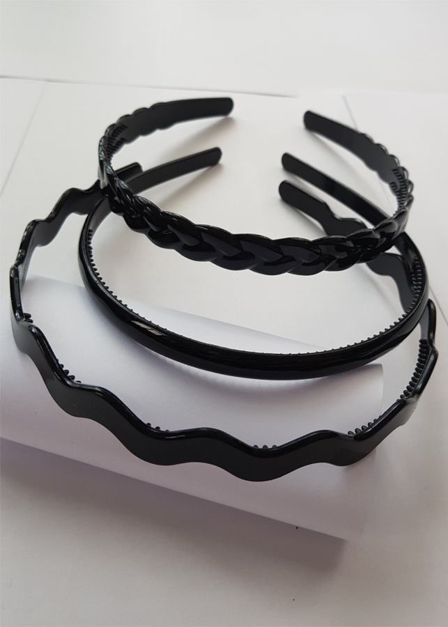 ✨Set 3 bờm nhựa đen trơn - lượn sóng - tết bím nam nữ
