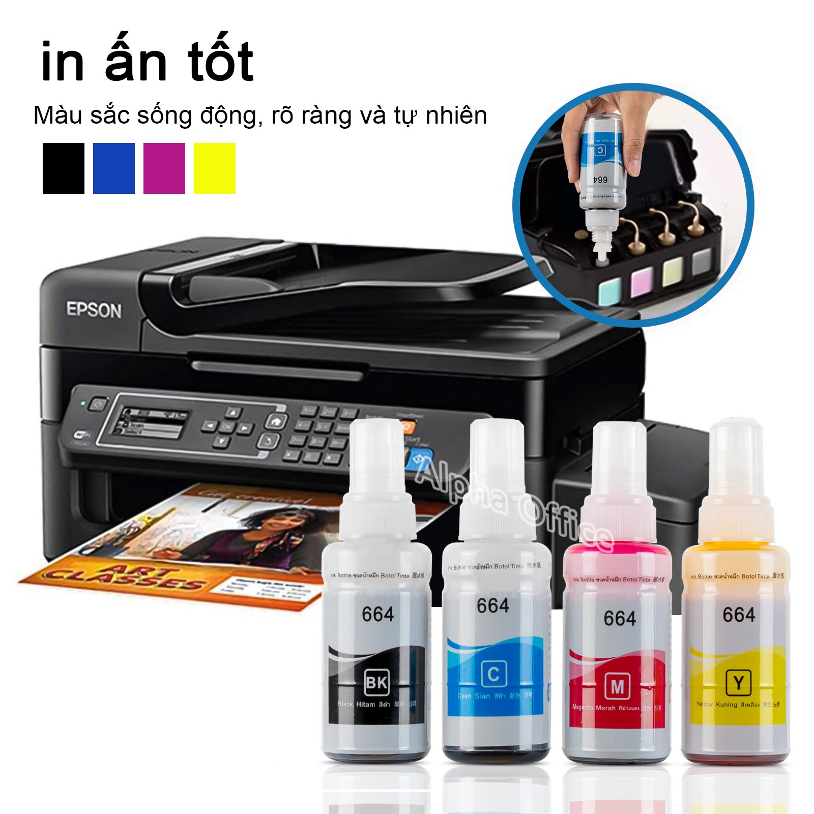 Mực in T664 cho máy in Epson L300, L310, L350, L360, L1300, L100, L120, L200, L210, L565