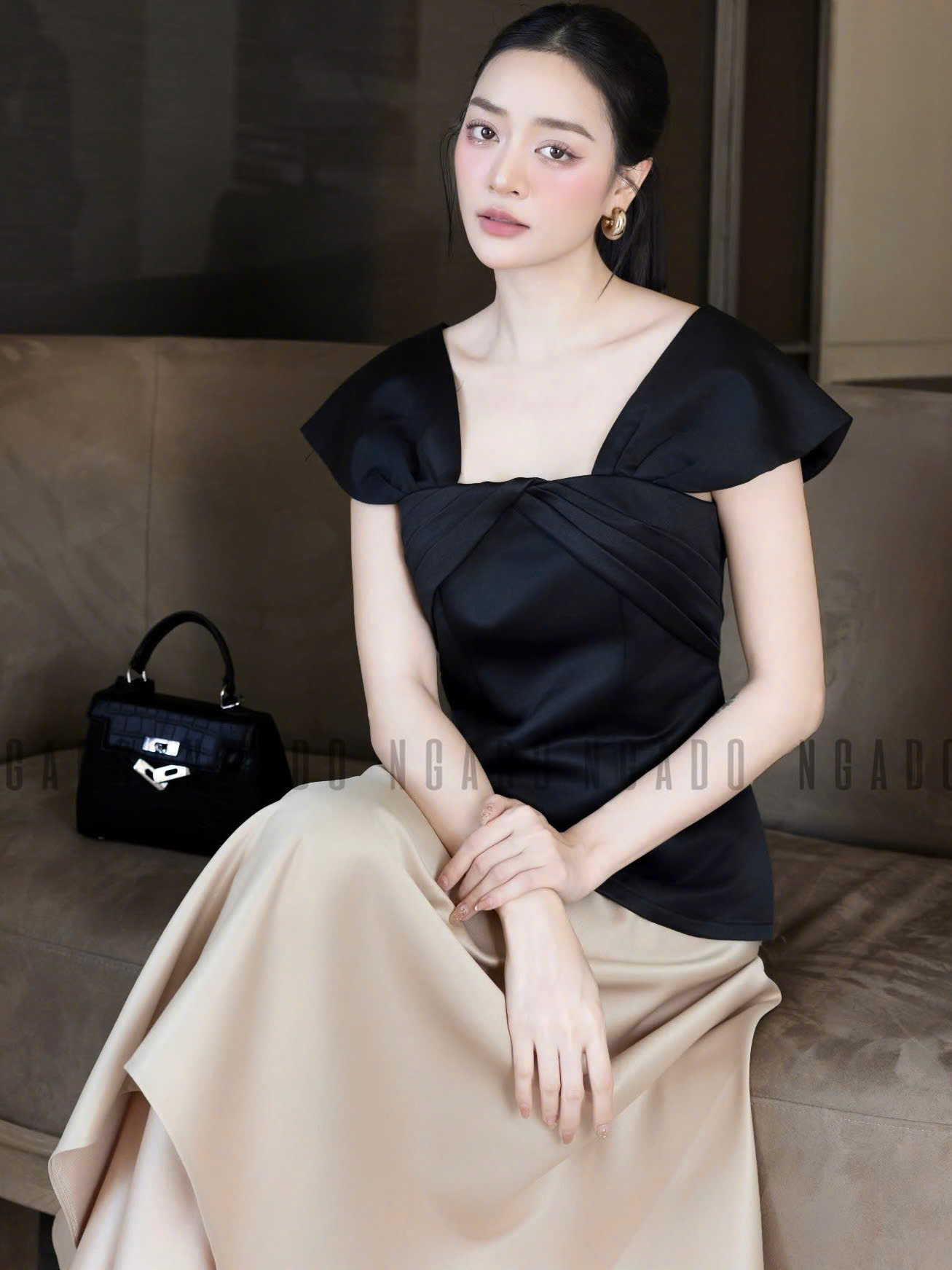 ✨Set áo váy đen nude tay con NGADO , set áo váy , set công sở