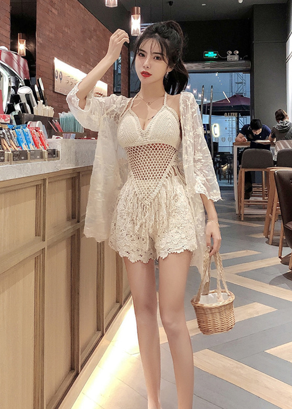 Có thể mua riêng set 2 chi tiết gồm Áo bikini len móc + Quần ren có lót đệm.