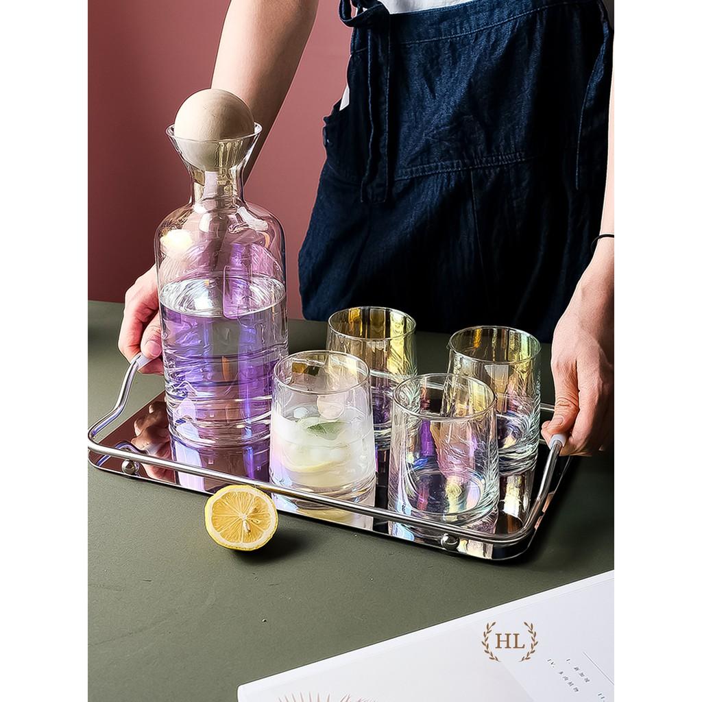 SET BÌNH CỐC THỦY TINH KÈM KHAY DECOR | BỘ BÌNH CỐC THỦY TINH KÈM KHAY SANG CHẢNH DECOR PHONG CÁCH SCANDINAVIA