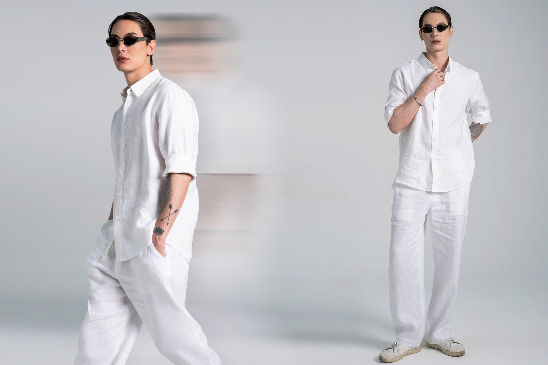 ✨Set Bộ Sơ Mi Nam Basic Áo Dài Tay Mix Quần Suông Ống Rộng Vải Linen Sợi Tự Nhiên Mát Mẻ