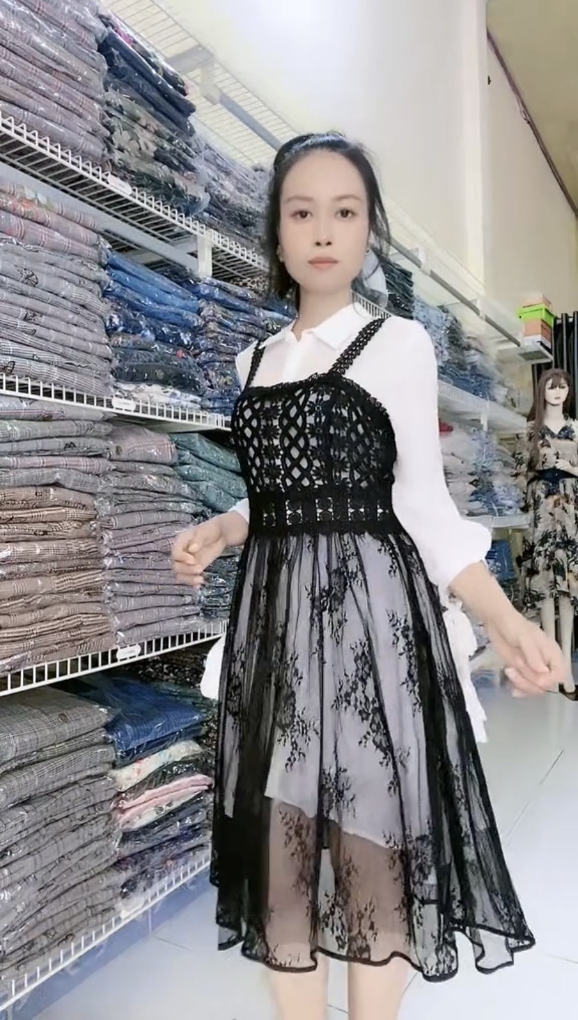 Đầm xếp ly voan lụa phối ren cao cấp Mã: DLBG010 Màu: Đen Chất liệu: Voan lụa, ren thêu loại 1 bền chắc Số đo vòng1/vòng2(cm): 80/70