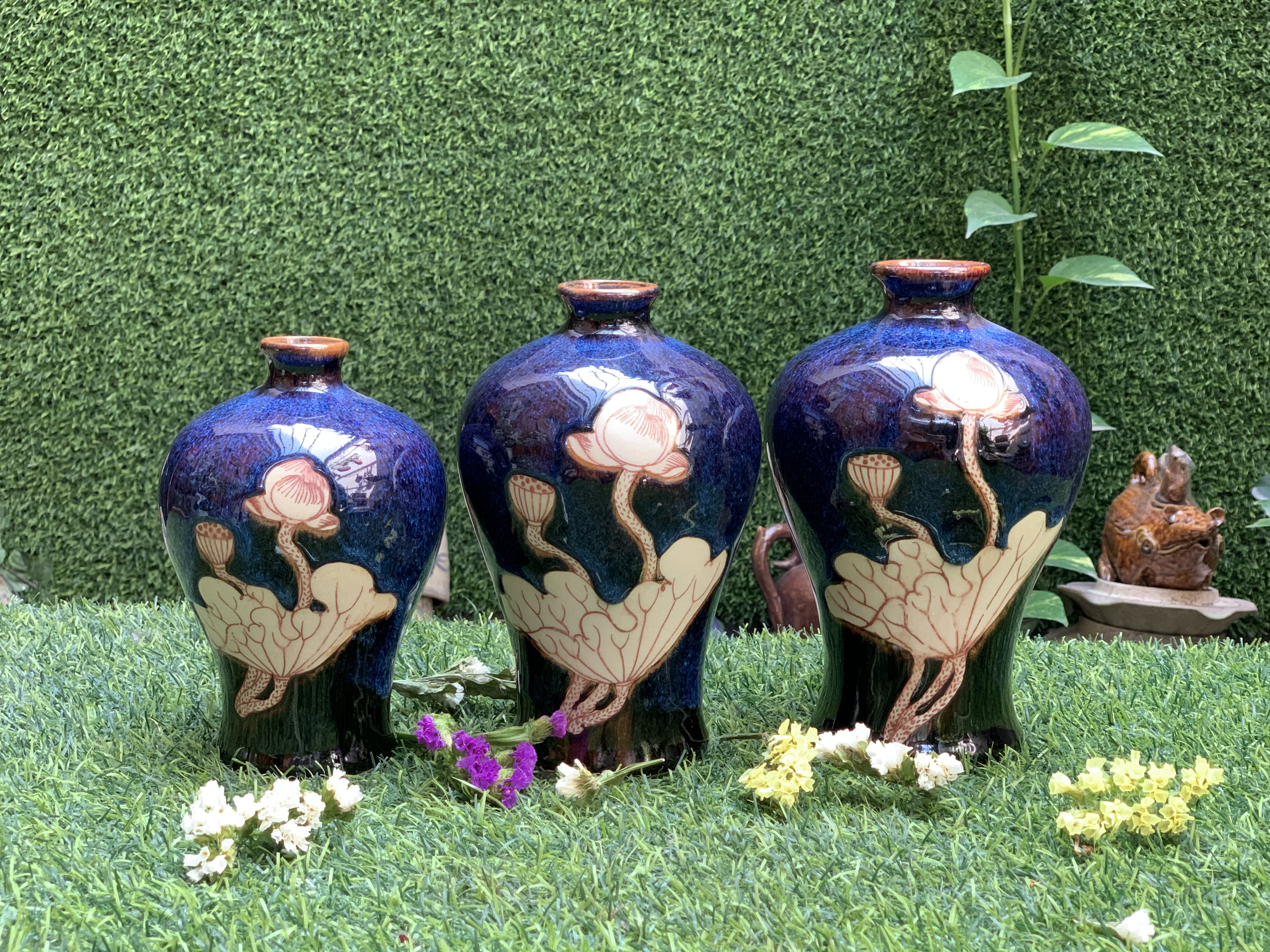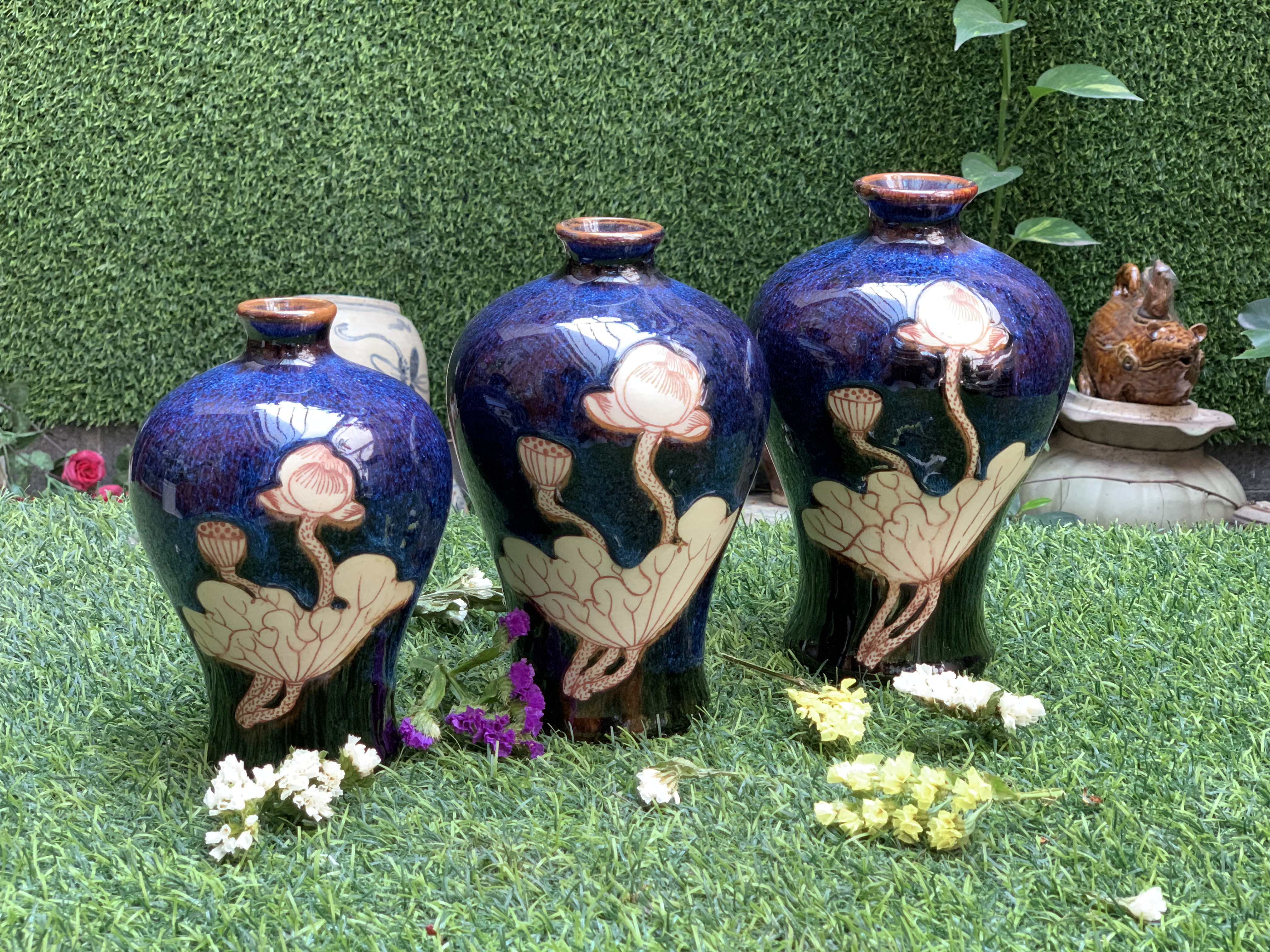 Bộ 3 bình hút tài lộc Men rạn cổ Bát Tràng Vẽ hoa tẩm tú cầu Dùng bầy , trang trí phòng khách , phòng giải trí của gia đình rất đẹp