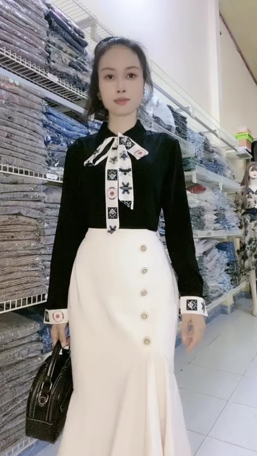 Mua tại TiktokBộ áo và váy công sở chất lượng cao Mã: SAVZAG0001 Màu: Be + Đen Chất liệu: lụa, polyester Số đo vòng1/eo áo/lưng váy(cm): 110/106/75