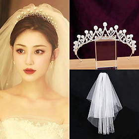 Mua tại TiktokSet sản phẩm gồm 1 vương miện ngọc trai và 1 voan cô dâu 2 lớp xinh đẹp.