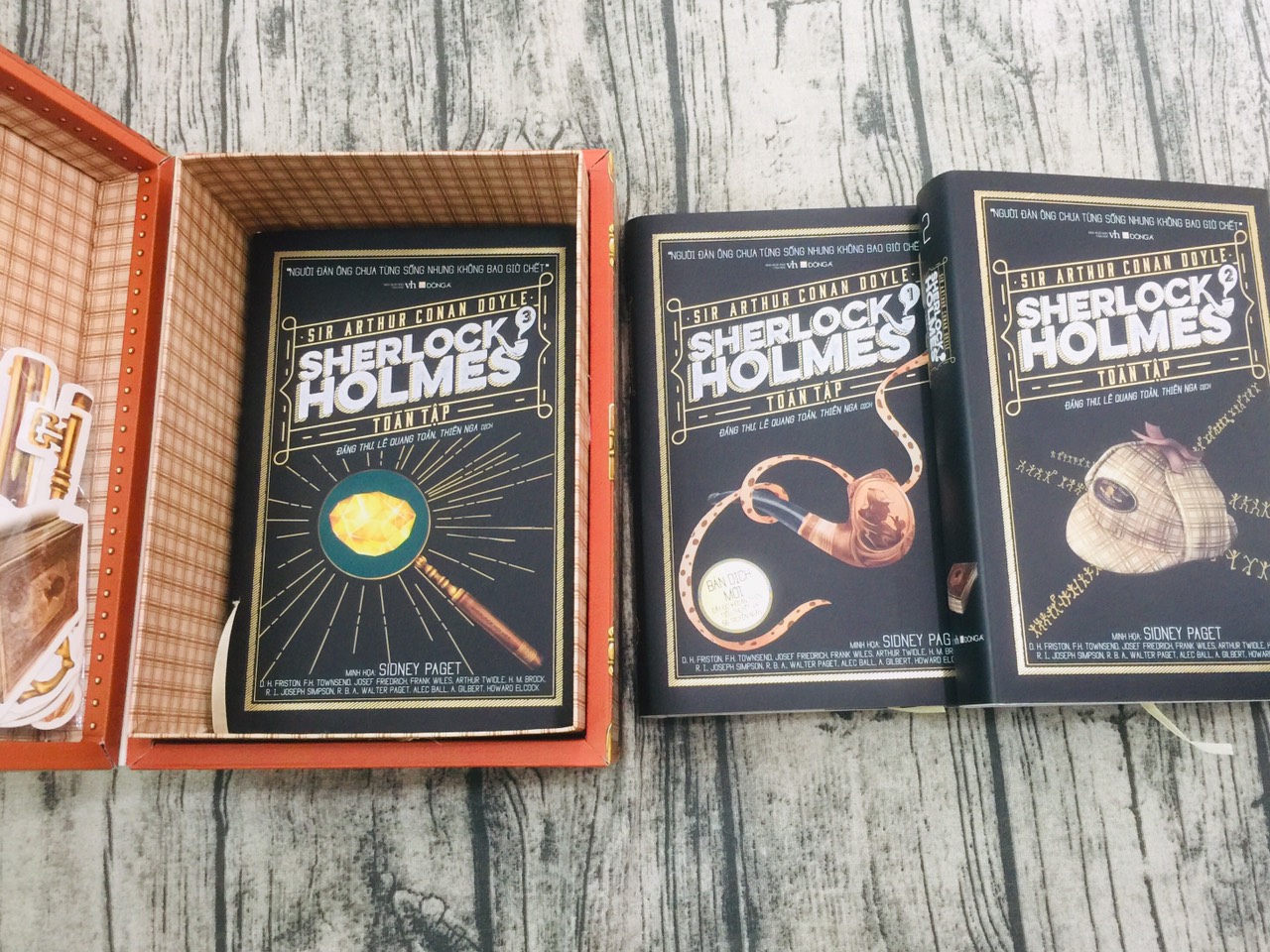 Bản dịch mới này tiếp cận tác phẩm của Doyle trên cả góc độ lịch sử và văn chương, không xem toàn tập Sherlock Holmes như những truyện trinh thám phổ thông mà là một danh tác kinh điển. Bộ Sherlock Holmes toàn tập 3 tập, bìa mềm, hộp ngang có thêm Phụ bản in màu ở cuối tập 3 về Bảo tàng Sherlock Holmes. Nội dung từng tập: Tập 1 Sherlock Holmes lần đầu ra mắt công chúng trong một vụ án mạng hóc hiểm với tựa đề Cuộc điều tra màu đỏ (1887). Đây là khởi điểm của tình bạn lâu bền giữa Sherlock Holmes và bác sĩ Watson mà rồi đây sẽ làm đổi thay lịch sử loại hình tiểu thuyết trinh thám. Tiếp đó, trong Dấu bộ tứ (1890), đôi bạn Holmes và Watson tái xuất trong một vụ án mạng không kém phần li kì, phức tạp. Hai thiên truyện đầu ấy, hiện lên sinh động qua lời kể của bác sĩ Watson, không chỉ giới thiệu với độc giả phương pháp điều tra và suy luận của nhà thám tử tài ba mà còn góp phần định hình phong cách cho những truyện Sherlock Holmes sáng tác sau này. Tập 2 Tập truyện ngắn thứ hai Những hồi ức về Sherlock Holmes (1894) mở ra cho độc giả cái nhìn toàn diện hơn về một Sherlock Holmes sở hữu nhiều năng lực xuất chúng nhưng cũng vô cùng lập dị. Cũng trong loạt truyện này, độc giả được hé lộ về vụ án đầu tiên đã tạo nên bước ngoặt đưa Holmes vào sự nghiệp thám tử; nhưng đáng nhớ nhất có lẽ là Vụ án cuối cùng, cuộc đối đầu gay cấn giữa Holmes và đối thủ nguy hiểm nhất trong giới tội phạm - giáo sư Moriarty. Tập 3 Khởi đầu từ một vụ án lắt léo tại vùng quê Anh quốc, Thung lũng Kinh hoàng (1915) đưa độc giả tới một vùng mỏ của Hoa Kì - sân khấu u ám cho những mưu mô, những cuộc đấu đá, thanh trừng, khủng bố của một băng đảng đã gieo rắc nỗi khiếp sợ cho biết bao con người. Cách dẫn dắt truyện ở đây gợi nhớ đến hai đoản thiên tiểu thuyết đầu cũng gắn với những vụ án có căn nguyên sâu xa từ hàng chục năm về trước.