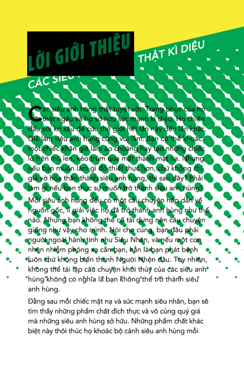 Với hình ảnh bắt mắt, vui nhộn, sách là cuộc hành trình vào câu chuyện của các siêu anh hùng vĩ đại nhất, khám phá ra vì sao họ lại có trái tim lớn lao và trí tuệ vững vàng, từ đó rút ra các bài học súc tích, chí lý cho bản thân – những bài học cuộc sống cô đọng và rất cần thiết cho quá trình học cách xây dựng nhân cách của các bạn nhỏ, rèn luyện những phẩm chất cần thiết, học sống và vững chãi trước mọi khó khăn của cuộc sống, ngay từ trong học đường tới, và học làm người hữu ích.