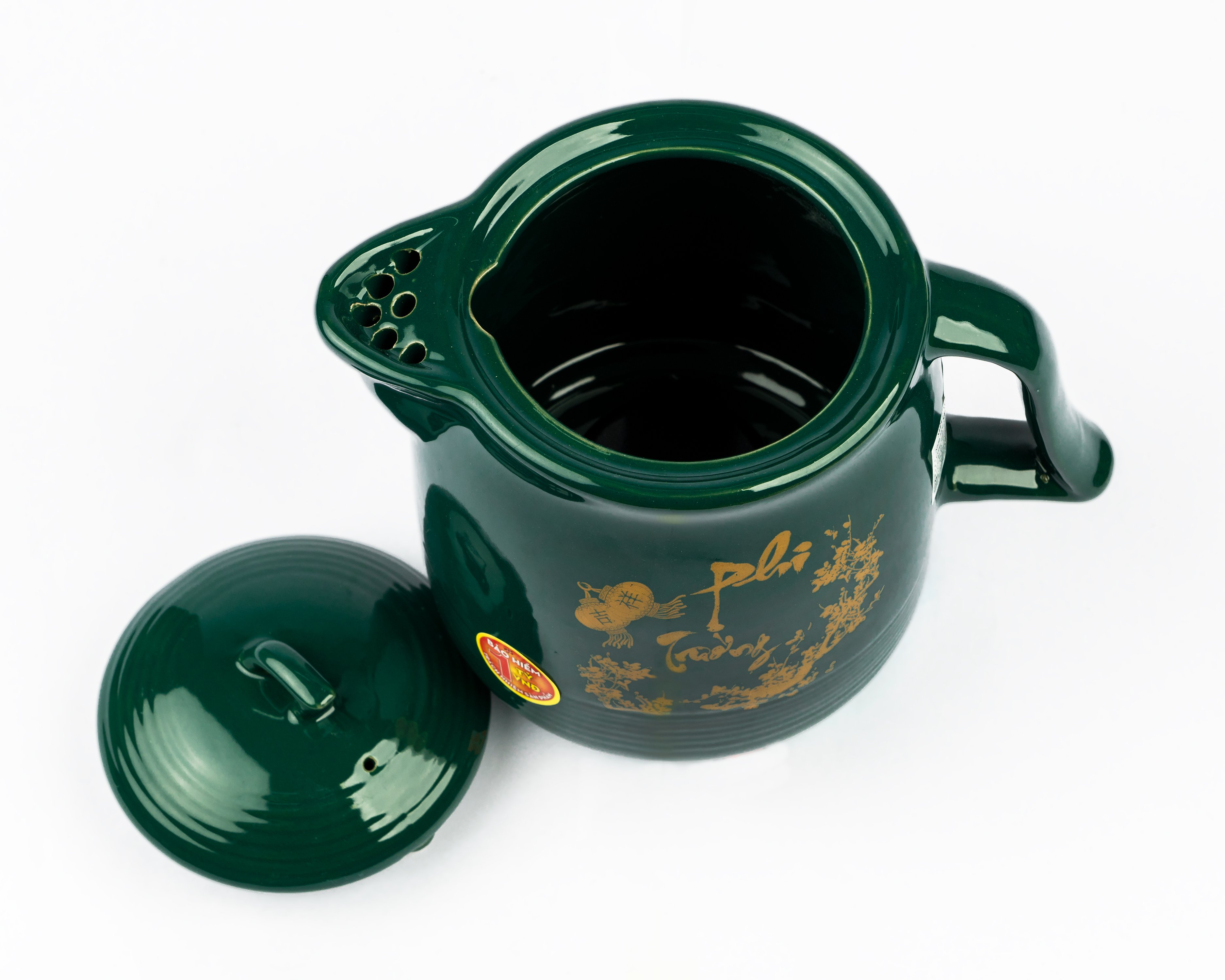 Siêu sắc thuốc Trường Thọ Bát Tiên Rồng Xanh BA-2086 3.2L (Xanh) được làm từ chất liệu gốm được nung ở nhiệt độ 1300 độ hoàn toàn khử hết chì trong đất. Men phủ ấm hoàn