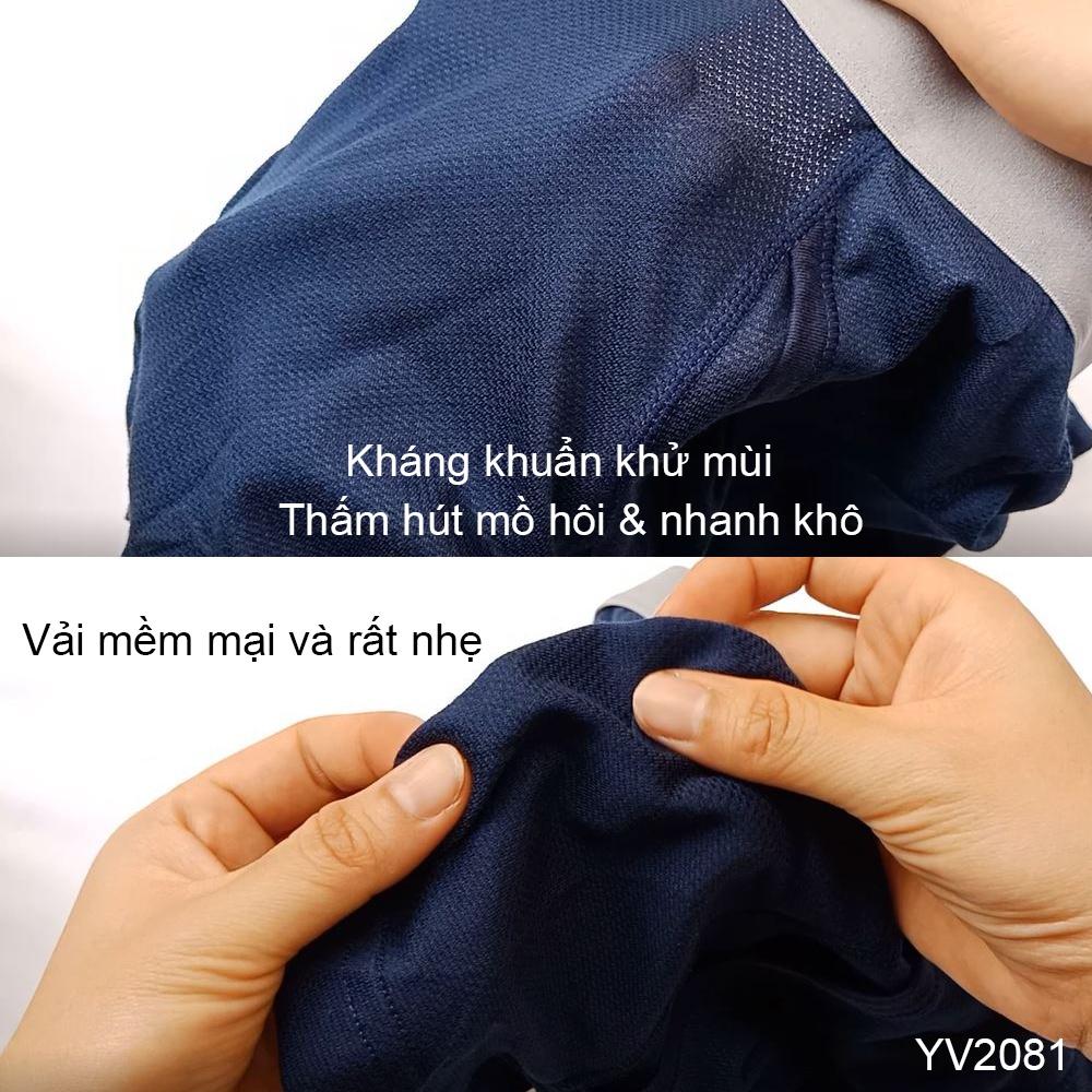 - Điểm đặc biệt ở quần lót Nhật chính là phần vải ở mặt trước sẽ được thiết kế 2 lớp dày dặn nhưng luôn để một khoảng hở mục đích hạn chế được sự gò bó và tạo sự thoáng mát cho cả ngày dài. --->> Chắc hẳn bạn cũng biết người Nhật Bản rất chú trọng đến đồ lót mặc bên trong tiếp xúc trực tiếp với da. YV2081 là mẫu sịp đùi nam có đầy đủ sự thoải mái vừa vặn, sạch sẽ và thoáng mát khi mặc. Đây cũng là mẫu boxer nam mình thích nhất khi nghiên cứu lựa chọn nhập về thị trường Việt Nam. THÔNG SỐ CHI TIẾT