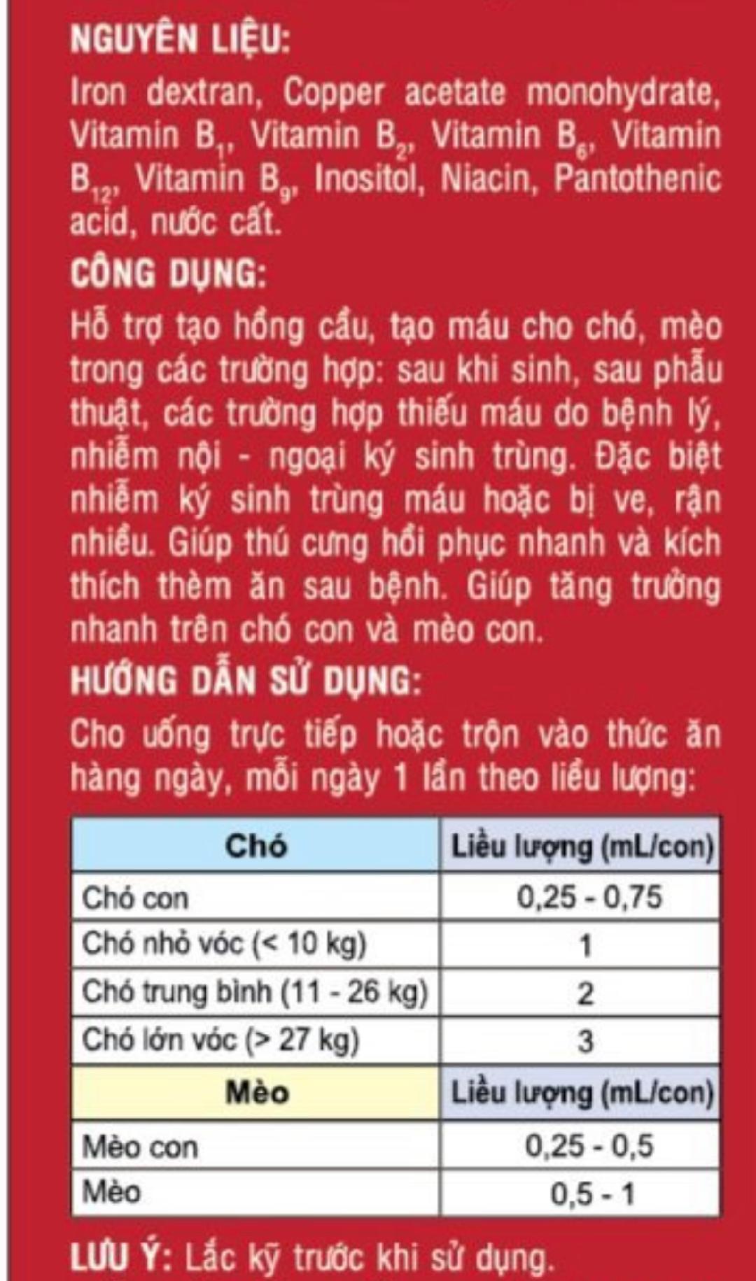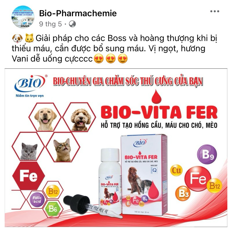 Mua tại Tiktok- Bio Vita Fer hỗ trợ tạo hồng cầu, tạo máu cho chó mèo: sau khi sinh, sau phẫu thuật, các trường hợp thiếu máu.