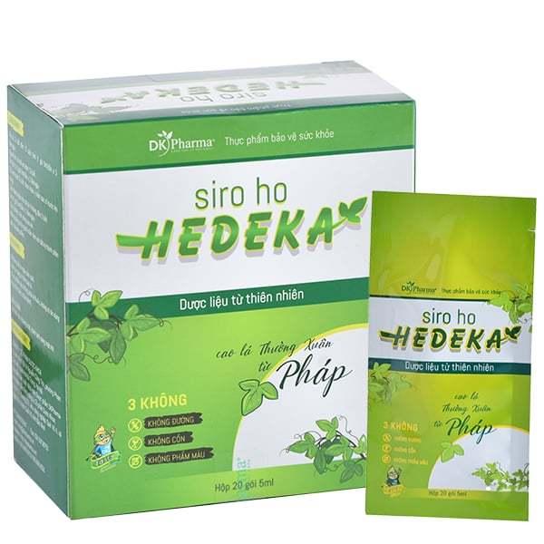 Siro ho Hedeka chứa cao lá Thường Xuân nhập khẩu từ Pháp có tác dụng kháng khuẩn, kháng viêm, làm dịu cơn đau ngứa họng và hỗ trợ giảm viêm họng, viêm phế quản. CÔNG