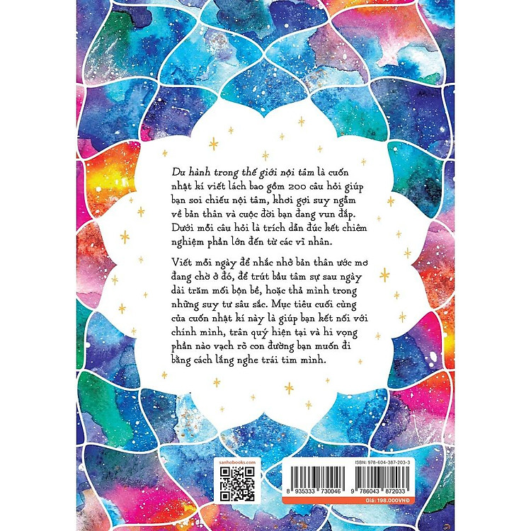Mua tại TiktokDu hành trong thế giới nội tâm là cuốn nhật kí viết lách bao gồm 200 câu hỏi giúp bạn soi chiếu nội tâm, khơi gợi suy ngẫm về bản thân và cuộc đời bạn đang vun đắp. Dưới mỗi câu hỏi là trích dẫn đúc kết chiêm nghiệm phần lớn đến từ các vĩ nhân.