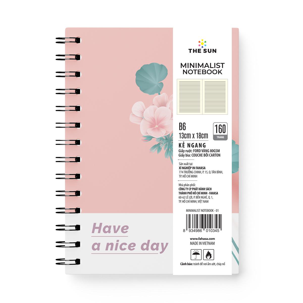 Sổ Lò Xo Bìa Cứng Minimalist B6 - Kẻ Ngang - 160 Trang 80gsm - The Sun 01