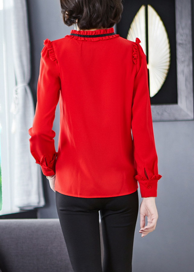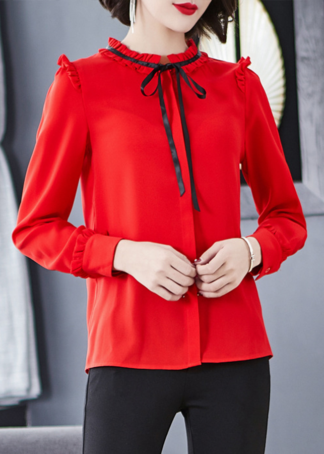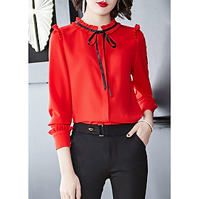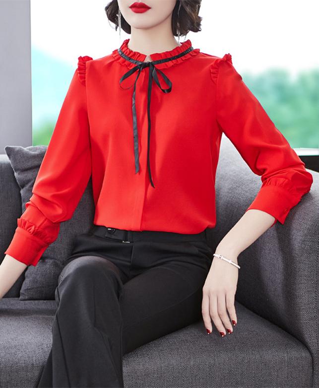 ✨Sơ mi nữ công sở màu đỏ dài tay phối nơ Sm46