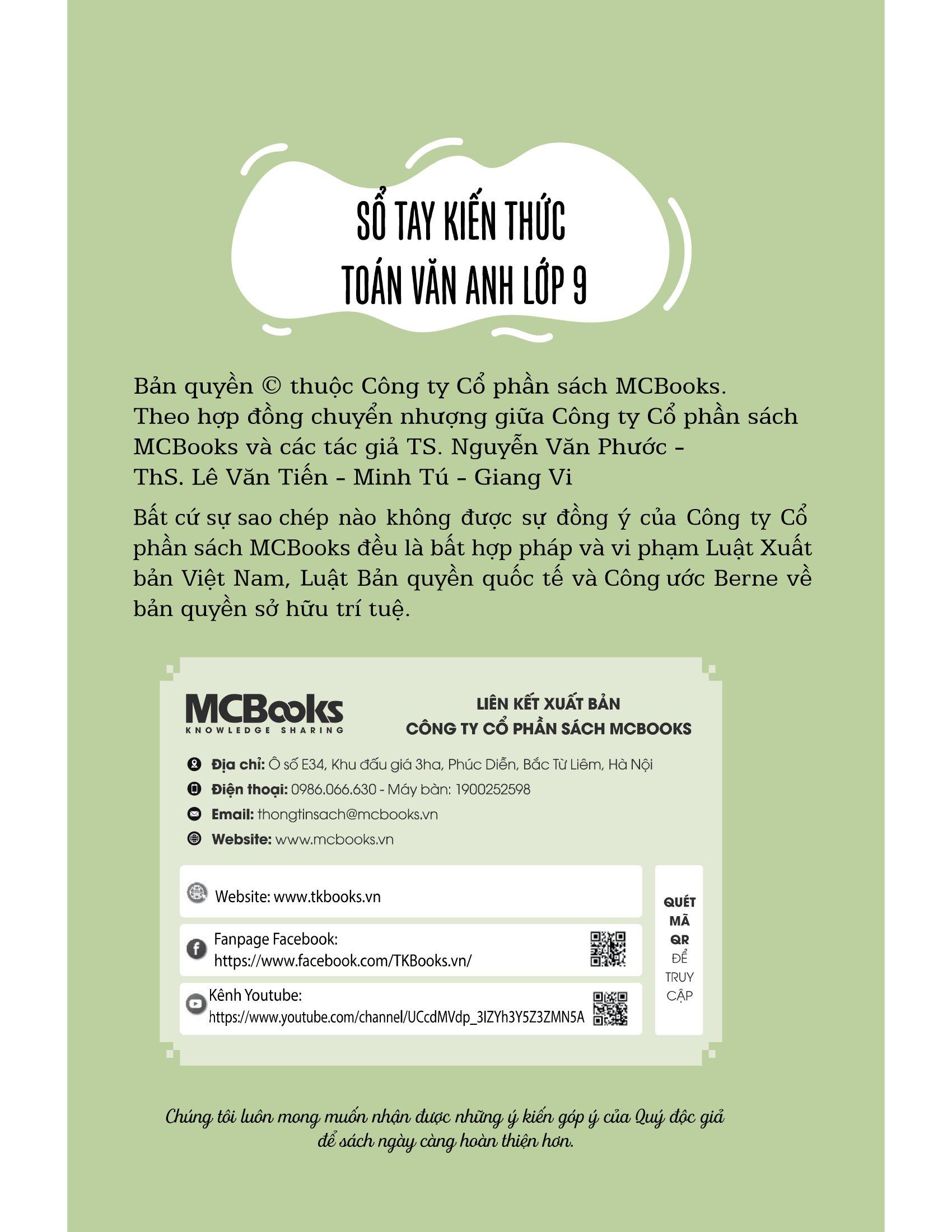 Với bố cục sắp xếp hợp lý của 3 phần kiến thức Toán - Văn - Anh, cuốn sổ tay này sẽ là một tài liệu hữu ích cho các bạn học sinh lớp 9 trong quá trình học tập và ôn luyện kiến thức.