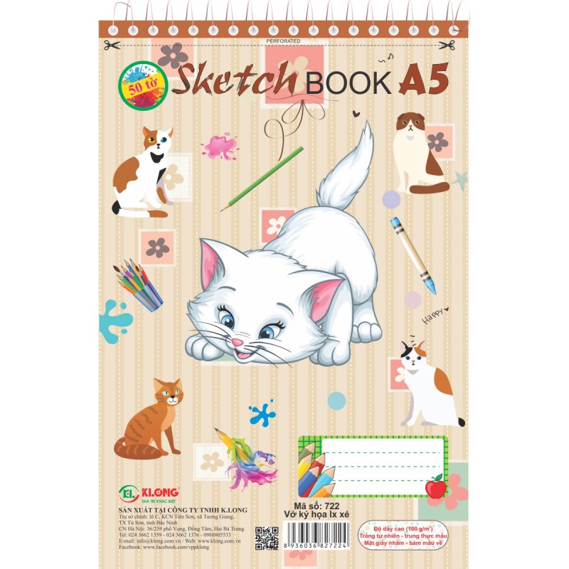 Sổ ký họa lò xo xé Klong A5 - 50 tờ; 722