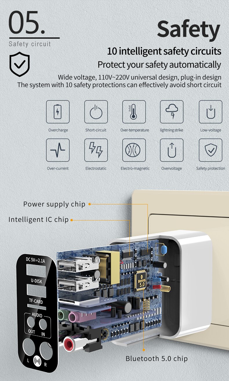 Tính năng: Bộ thu âm thanh tương thích với Bluetooth, bộ chuyển đổi âm thanh kỹ thuật số sang tương tự, bộ điều hợp phát lại đĩa flash USB. Có dây thành không dây, biến