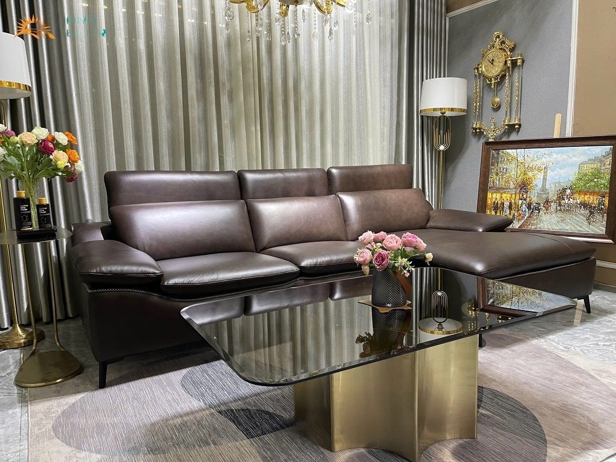 Ghế sofa góc L da bò Italy màu Nâu Sang Trọng SF-LX #shorts