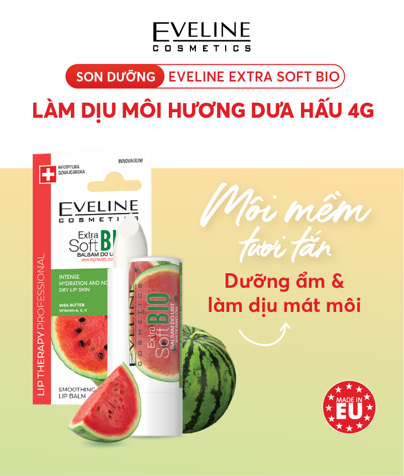 ✨Son dưỡng Eveline Extrasoft Bio làm dịu môi hương dưa hấu 4g