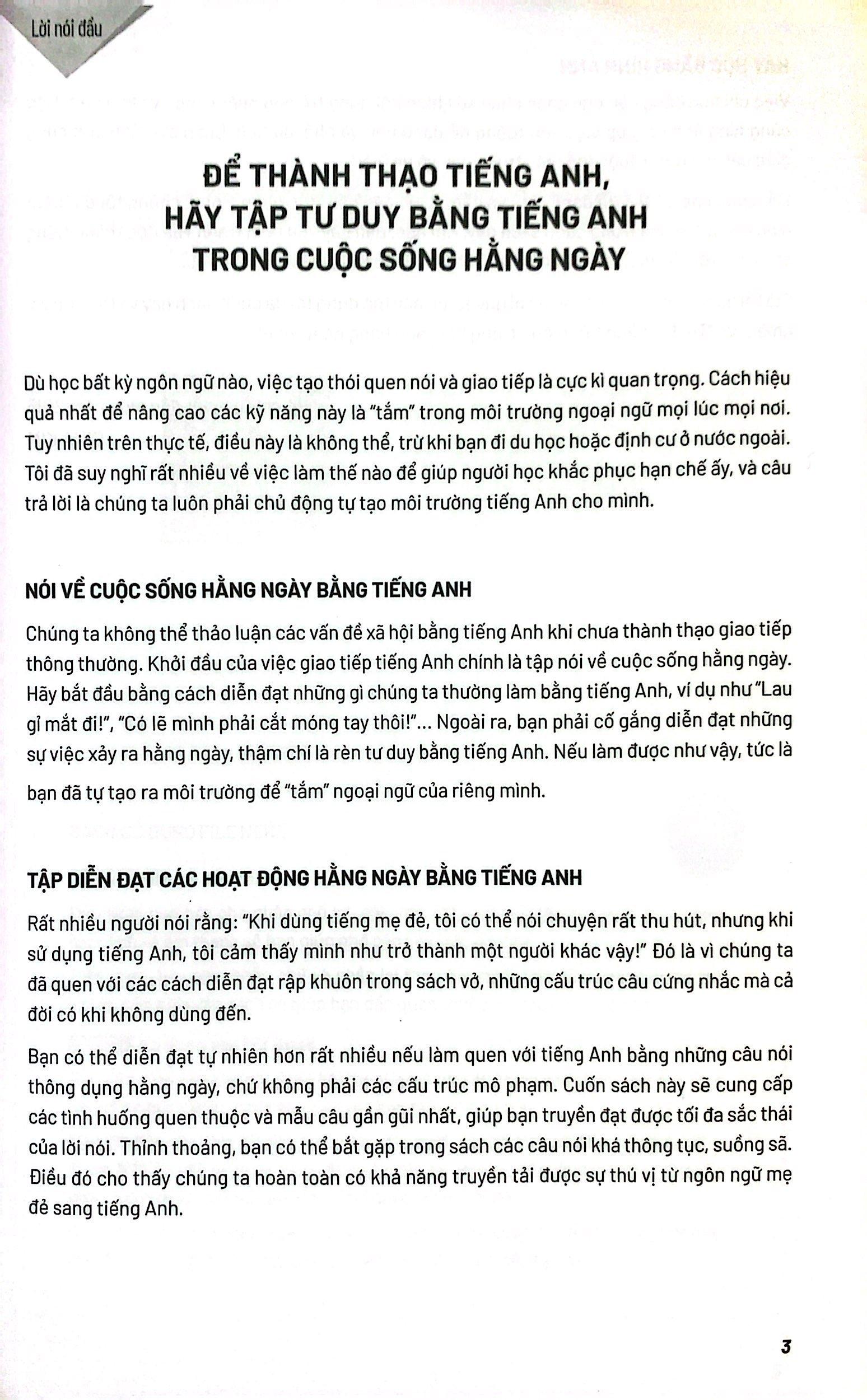 Sống Sót Nơi Công Sở Everyday English - Nói Đi Ngại Gì Everyday English cung cấp các câu thông dụng tương ứng với các chủ đề khác nhau. Phần chuẩn bị đưa ra 6-7 bức ảnh sinh động minh họa cho từ/cụm từ cần học, khiến việc ghi nhớ trở nên dễ dàng hơn. Phần hội thoại/văn bản mẫu được sắp đặt hợp lý, giúp người học hình dung sẽ áp dụng các câu mẫu vào cuộc sống thường ngày như thế nào. Phần tổng hợp sẽ hệ thống lại toàn bộ các câu mẫu đã học, giúp người học dễ dàng tra cứu và luyện tập Ưu điểm nổi bật: