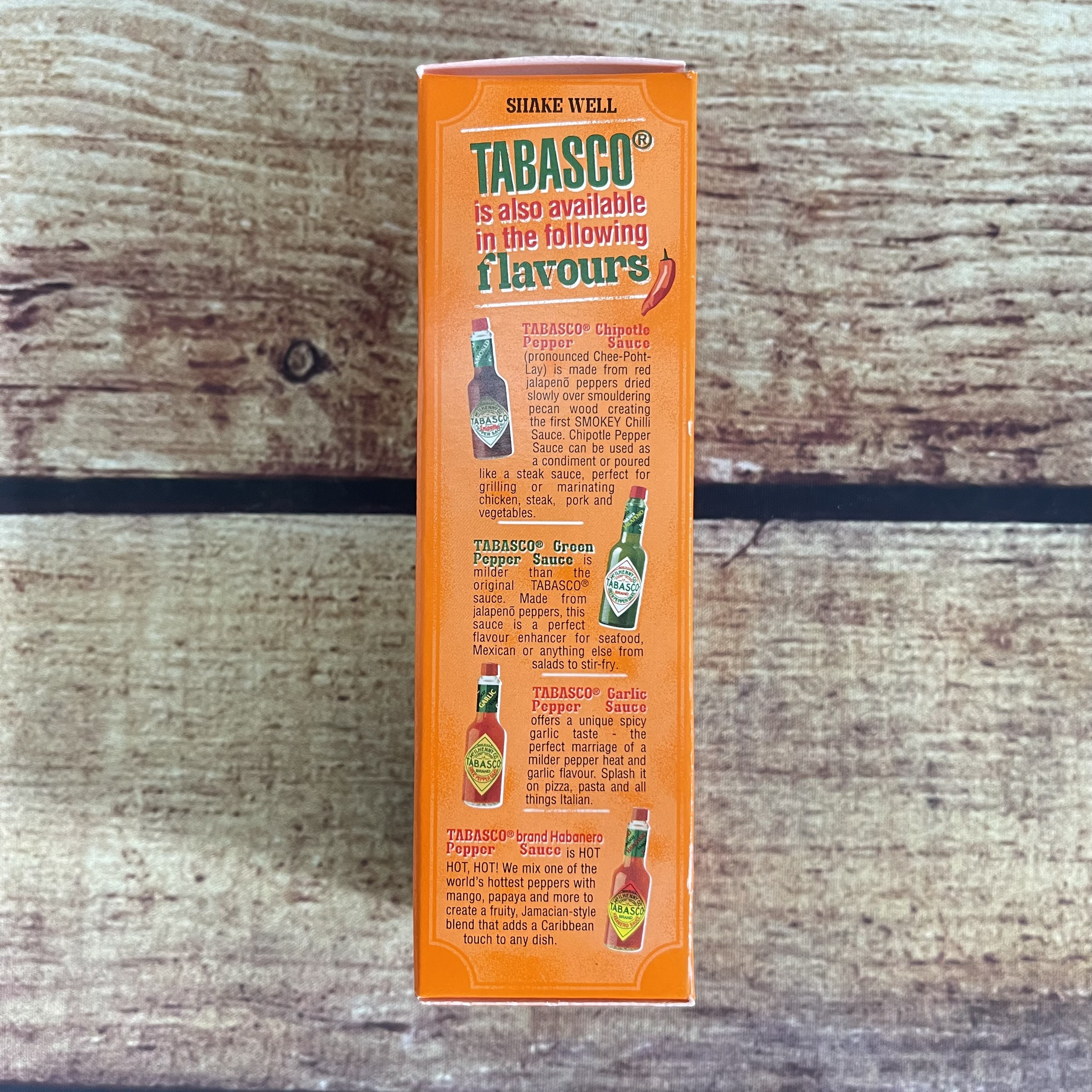 Thành phần: Ớt đỏ, muối từ đảo Avery, Louisiana và giấm chưng cất chất lượng cao được ủ trong thùng gỗ sồi.