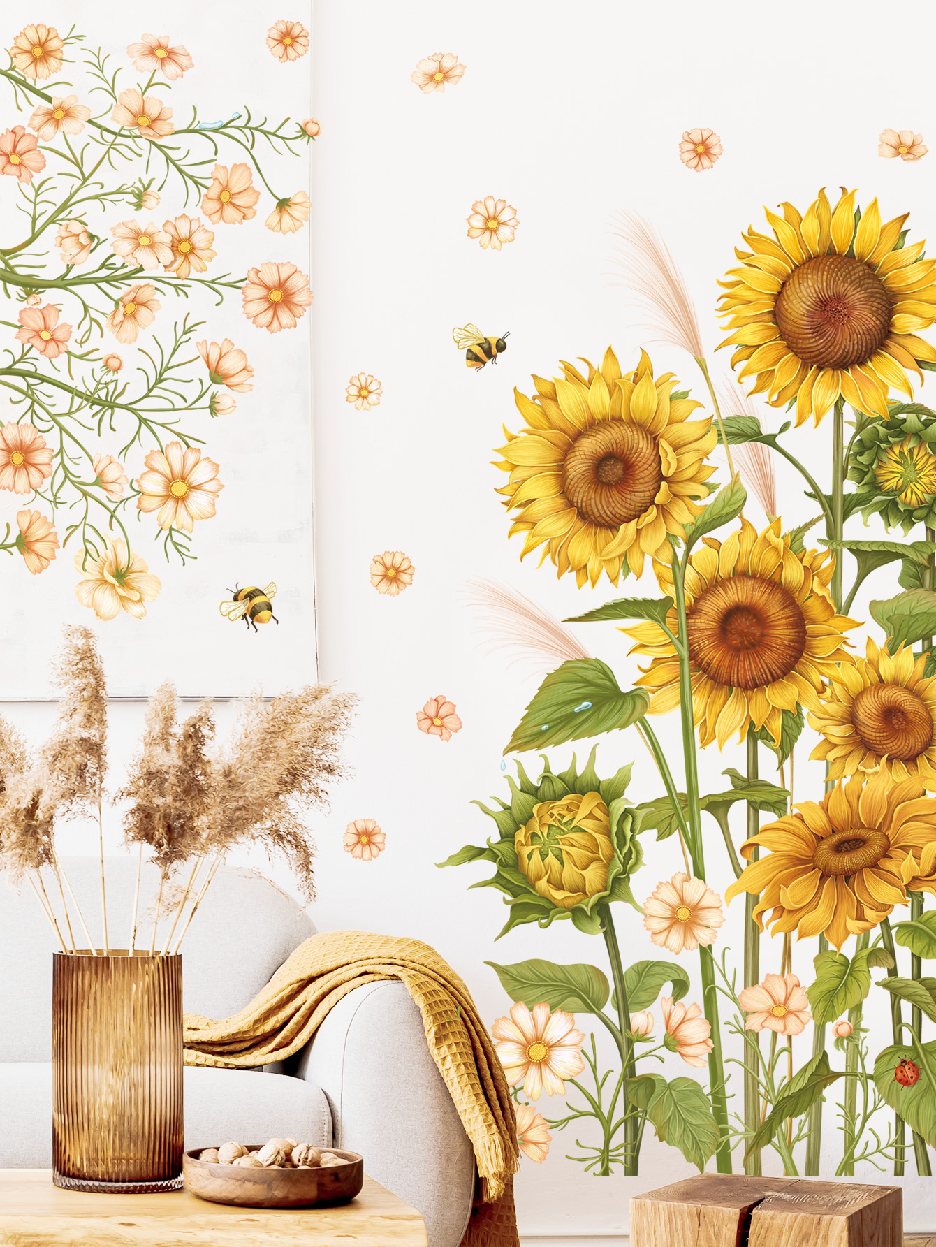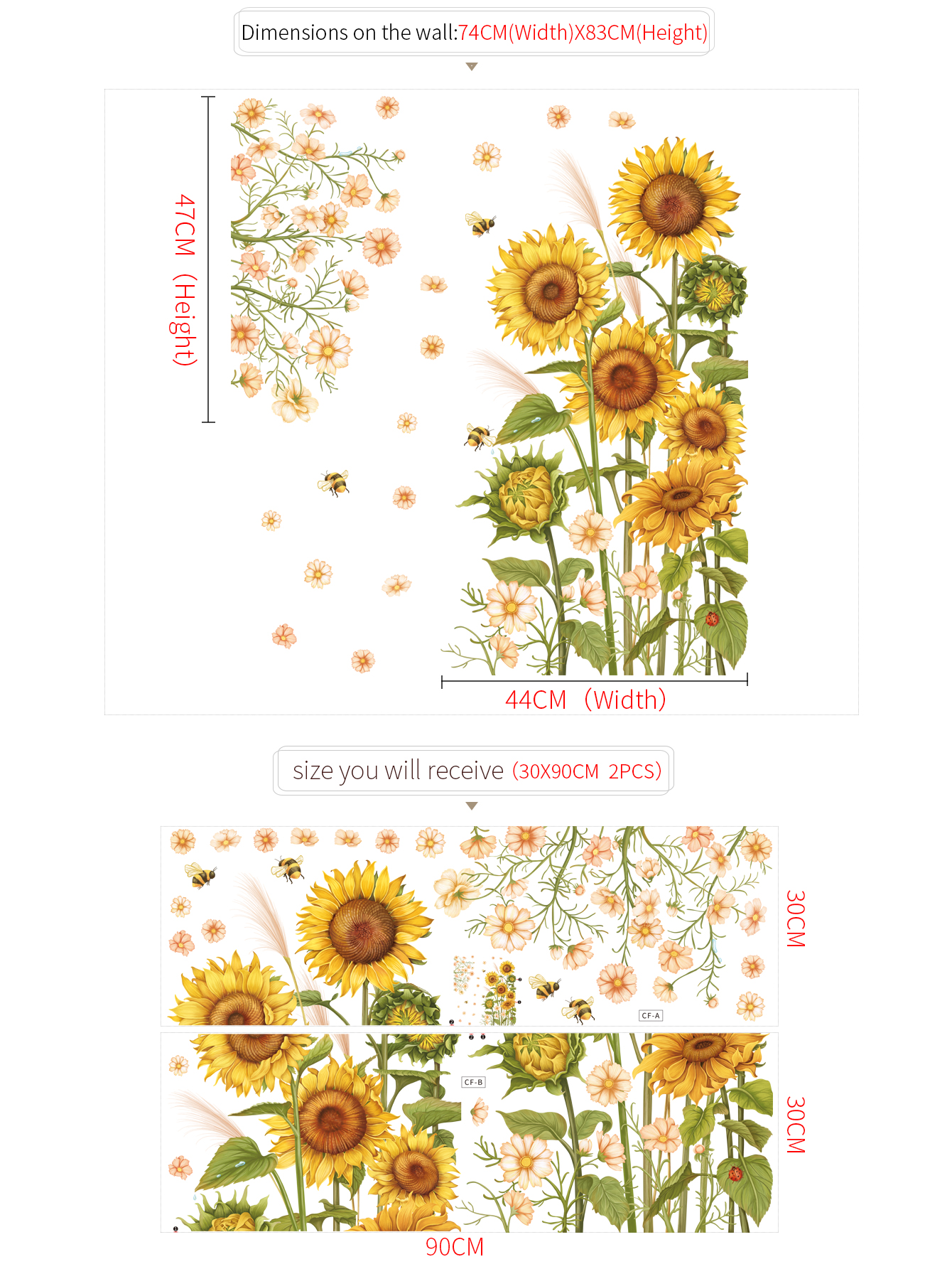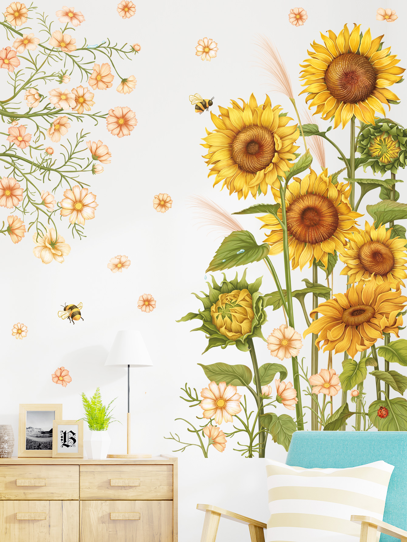 ✨Sticker Giấy Dán Tường Decal Dán tường Tranh Dán Tường Trang Trí Tường Mẫu Cánh Đồng Hoa Mặt Trời ZDB-2103