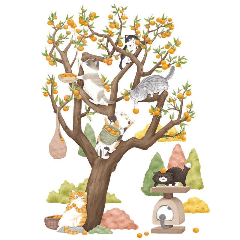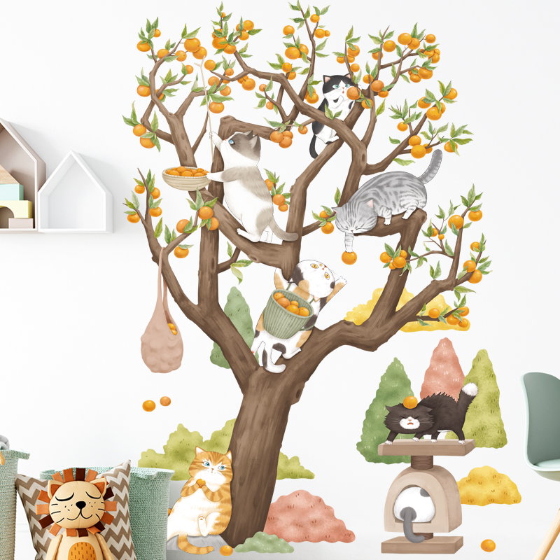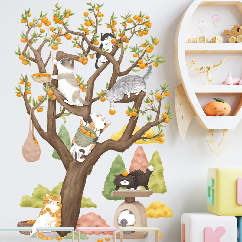 ✨Sticker Giấy Dán Tường Decal Dán tường Tranh Dán Tường Trang Trí Tường Mẫu Gia Đình Mèo Thu Hoach Cam ZH-1016