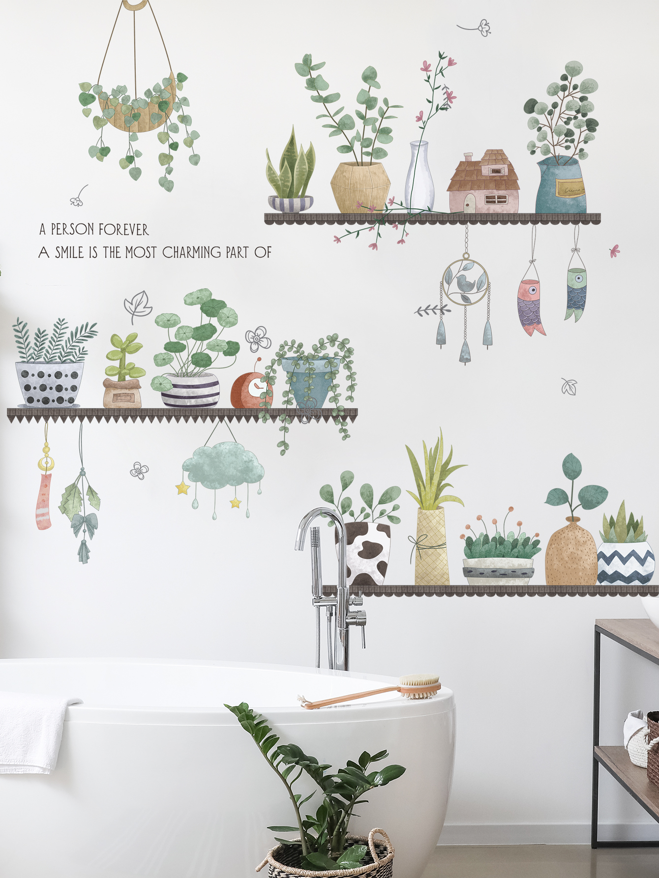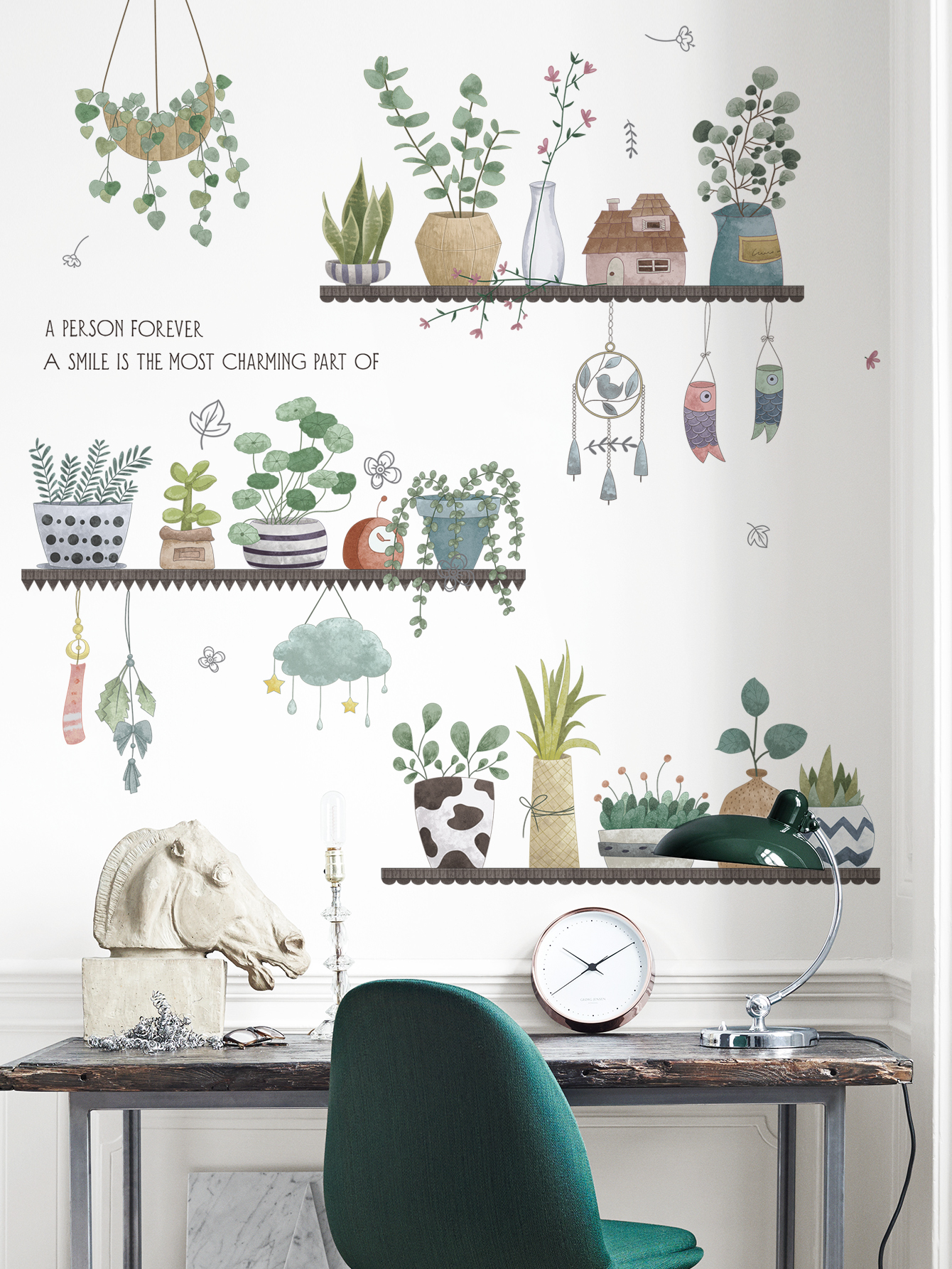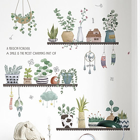 ✨Sticker Giấy Dán Tường Decal Dán tường Tranh Dán Tường Trang Trí Tường Mẫu Kệ Hoa Lá Phong Cách Vintage ZDB-2284