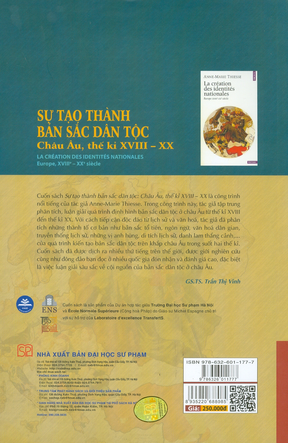 Về tác giả - Giáo sư Anne-Marie Thiesse là nhà nghiên cứu văn học và sử học nổi tiếng với những công trình nghiên cứu được đánh giá cao về lịch sử, văn hoá châu Âu thế kỉ XVIII – XXI, đặc biệt, bà tập trung nghiên cứu mối tương quan giữa văn hoá chính trị trong bối cảnh hiện đại. Với bằng Tiến sĩ tại Đại học Paris 3 Sorbonne Nouvelle (1981) và bằng Tiến sĩ tại Đại học Lyon-II (1990), Giáo sư Anne-Marie Thiesse là Giám đốc Nghiên cứu và là Nghiên cứu viên cao cấp (Senior Researcher) tại Trung tâm Nghiên cứu Khoa học Quốc gia Paris (CNRS). Bà được CNRS trao Huy chương Đồng (1983) và Huy chương Bạc (2020) về những thành tích trong nghiên cứu khoa học. Một số công trình tiêu biểu của bà có thể kể đến như: Ecrire la France, la littérature régionaliste de la Belle Epoque à la Libération [Viet ve nước Pháp, phong trào văn học khu vực từ Thời kì Tươi đẹp đến Giải phóng] (Nxb Đại học Pháp, 1991); Le Roman du Quotidien, lecteurs et lectures populaires à la Belle Epoque [Tiểu thuyết đời thường, người đọc và sự đọc trong dân chúng Thời kì Tươi đẹp] (Nxb Seuil, tái bản năm 2001); La Création des Identités nationales: Europe, XVIII - XXe siècle [Sự tạo thành bản sắc dân tộc: Châu Âu, thế kỉ XVIII – XX) (Nxb Seuil, 1999); La Fabrique de l'Ecrivain national, entre littérature et politique [Sự định hình Nhà văn quốc gia giữa văn học và chính trị (Nxb Gallimard, 2020).