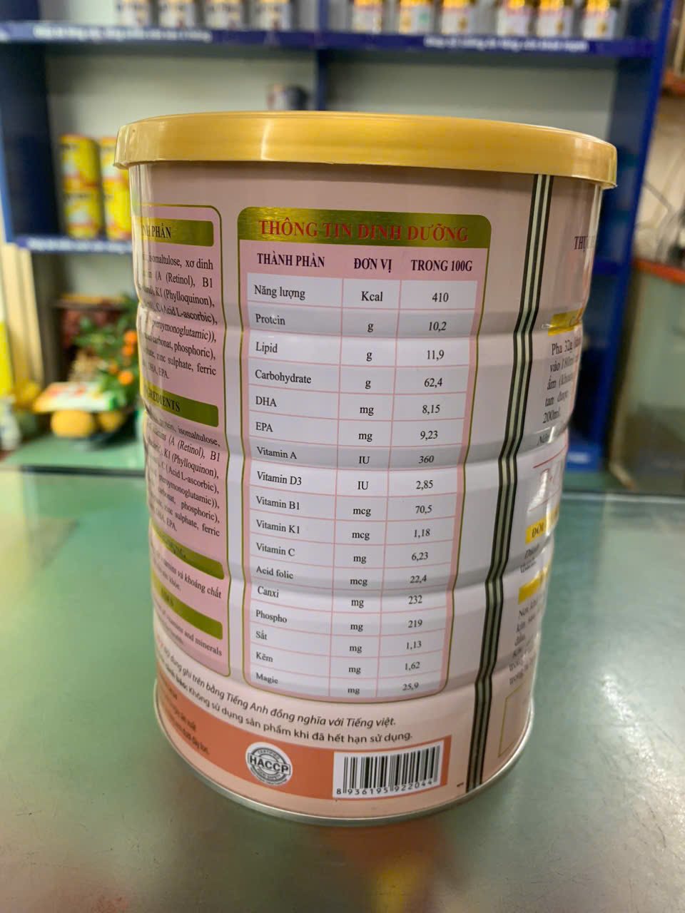Thành phần: Sữa bột, Maltodextrin, Whey protein, FOS(chất xơ hòa tan), Sữa non, DHA, L-Lysine HCL, Choline, Taurine, Vitamin ( Vitamin A, Vitamin D3, Vitamin E, Vitamin K1, Vitamin C, Vitamin B1, Vitamin B2,