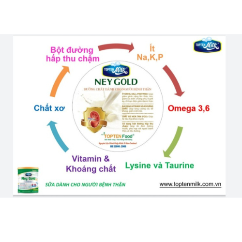 Nhãn hiệu sữa Y Tế chất lượng Ney Gold - thương hiệu TopTen Milk: BSDD cho người bệnh về Thận
