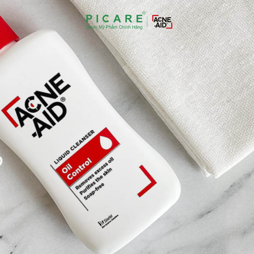 - Sữa rửa mặt acne-aid liquid cleanser với công thức làm sạch dịu nhẹ bao gồm hỗn hợp cân bằng độ PH và không chứa xà phòng.
