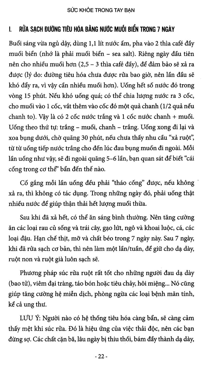 I. Rửa sạch đường tiêu hóa bằng nước muối biển trong 7 ngày