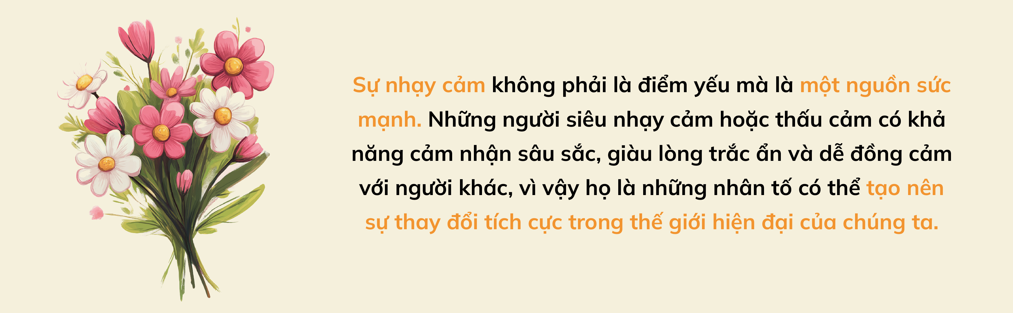 Ở một khía cạnh bao quát hơn, quyển sách đi sâu vào vai trò của sự đồng cảm, nhạy cảm và lòng nhân ái trong xã hội hiện đại, nơi những phẩm chất này thường bị coi nhẹ hoặc đánh giá thấp. Moorjani lập luận rằng trong một thế giới ngày càng phân cực và căng thẳng, người thấu cảm đảm nhận một vai trò quan trọng trong việc làm dịu đi những xung đột và lan tỏa tình yêu thương cùng sự thấu hiểu. Khi chấp nhận và vận dụng sức mạnh của mình, người thấu cảm không chỉ có thể bảo vệ bản thân mà còn giúp thế giới trở nên tốt đẹp hơn.