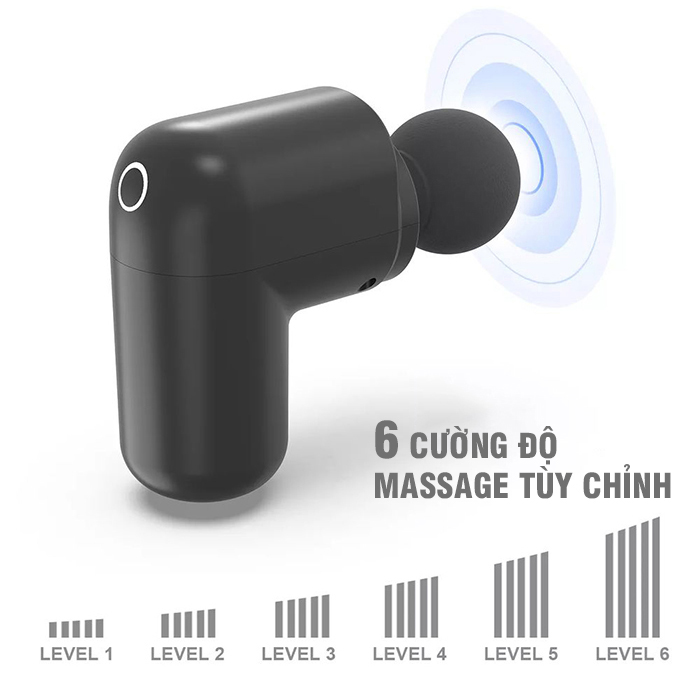 Súng massage cầm tay Mini Nikio NK-173 có 6 mức tốc độ điều chỉnh, mang đến trải nghiệm massage thư giãn chuyên nghiệp. Cường độ massage đa dạng giúp bạn có thể massage cho mọi nhóm cơ một cách hiệu quả mà không sợ làm các cơ tổn thương.